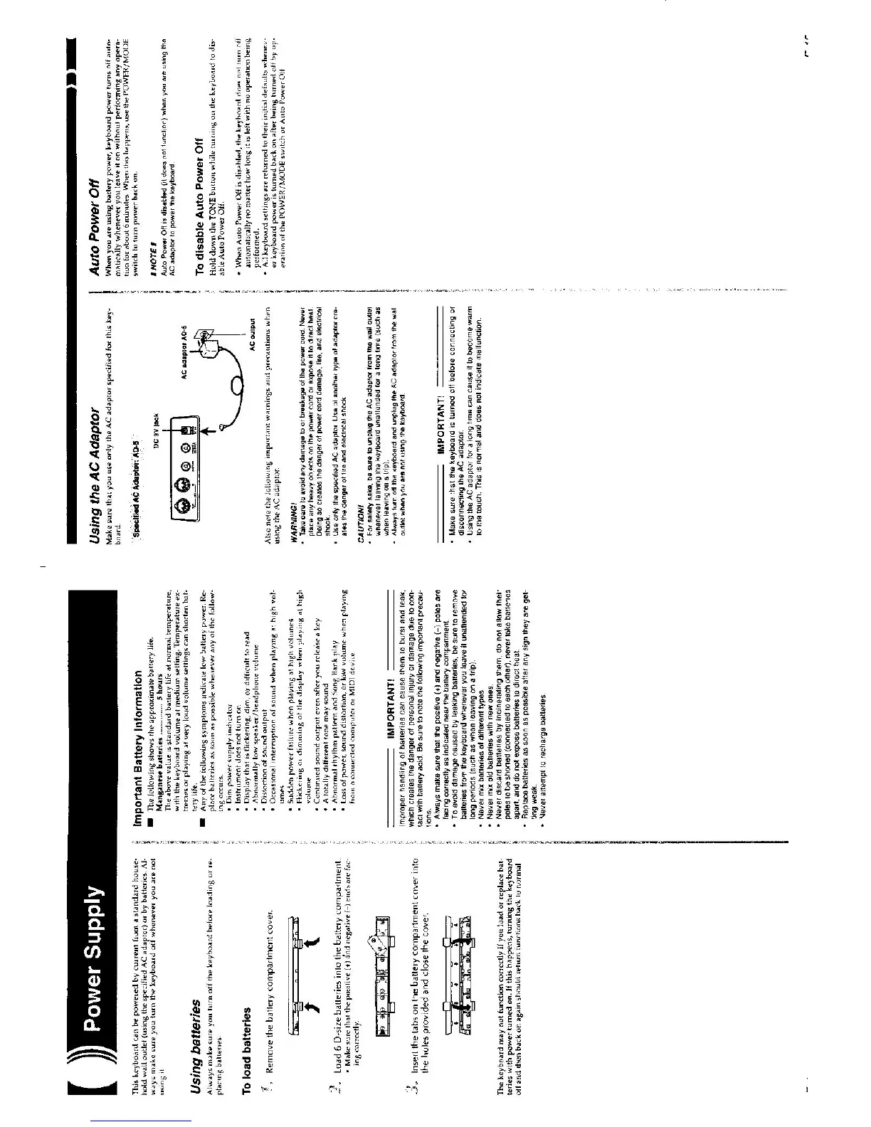 Casio CTK-558 - Power Supply; Using batteries; Important Battery Information; Using the AC Adaptor