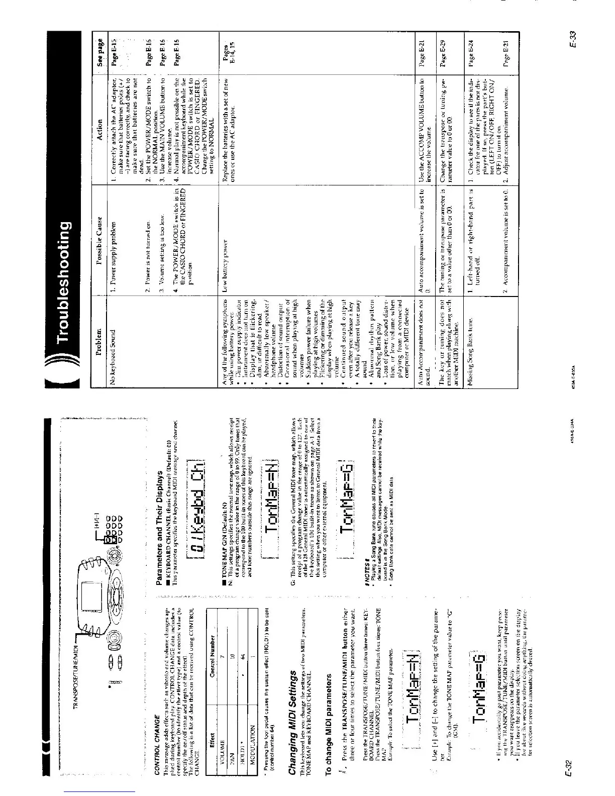 Casio CTK-558 - Troubleshooting; Problem: No keyboard Sound; Problem: Power is not turned on.; Problem: Volume setting is too low.