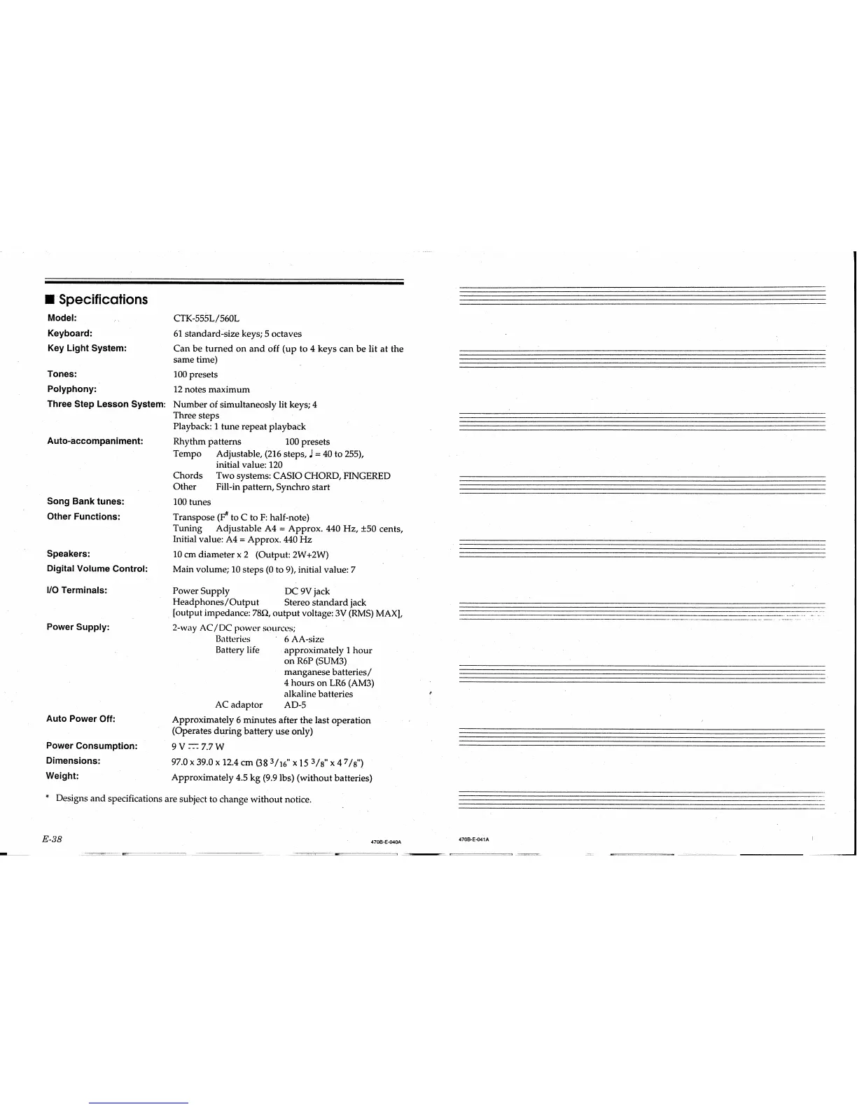 Casio CTK-560L - Product Specifications Overview