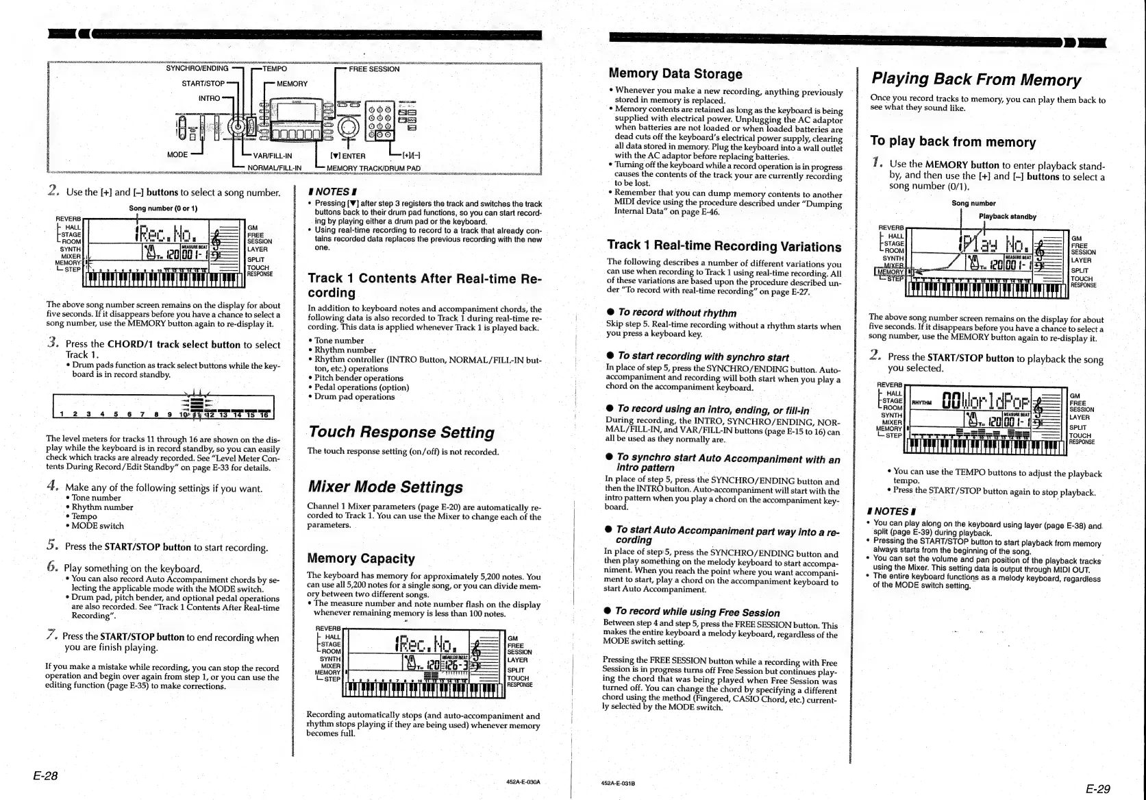 Casio CTK-611 - Recording and Playback; Recording Multiple Tracks; Track Recording Methods; Playing Back Recorded Songs
