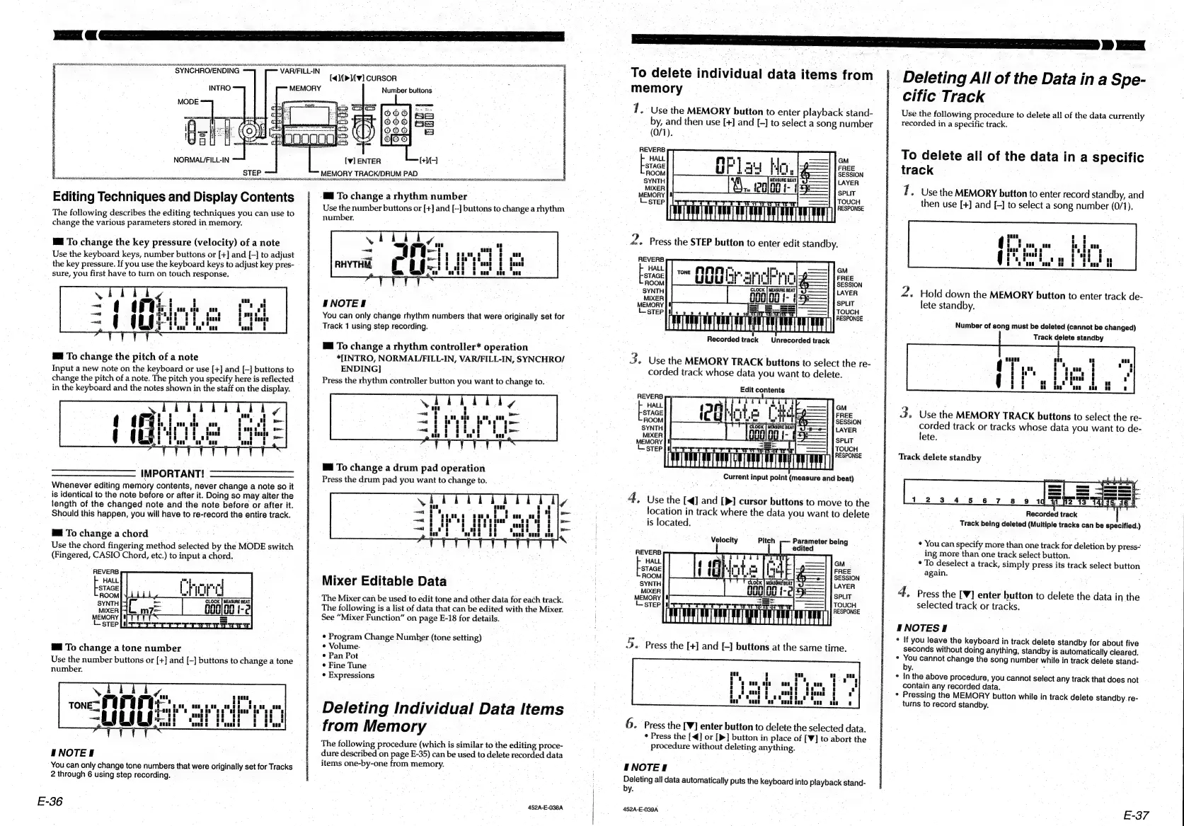 Casio CTK-611 - Editing and Deleting Data; Editing Note and Parameter Details; Deleting Memory Data Items