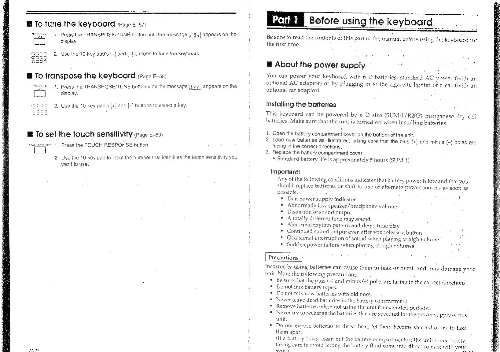 Casio CTK-650 - Part 1: Before Using the Keyboard; Power Supply Options and Installation; Important Battery Precautions