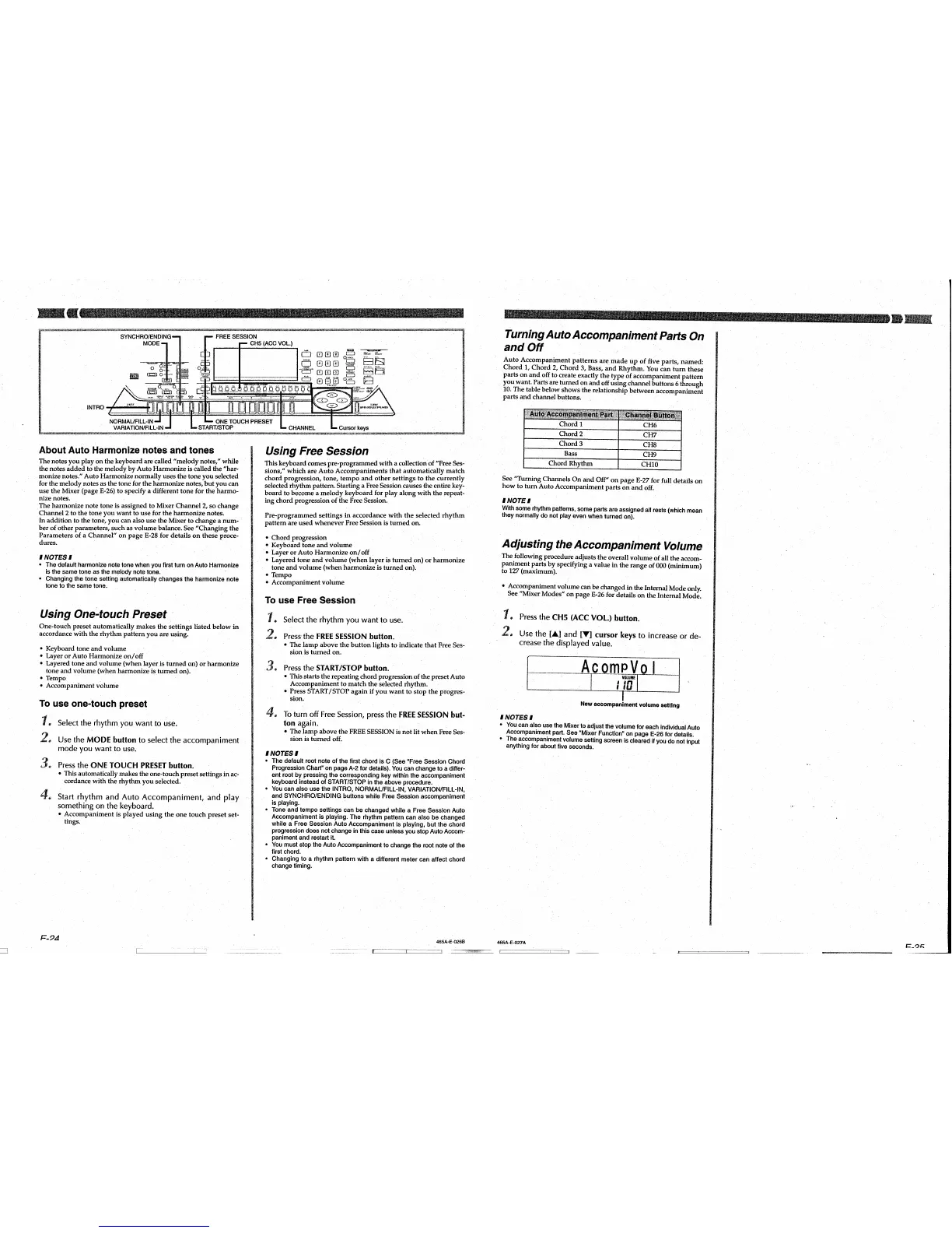 Casio CTK-811EX - Auto Accompaniment; Turning Auto Accompaniment Parts On and Off