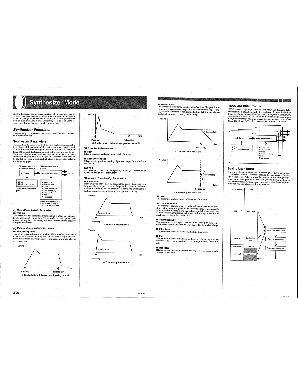 Casio CTK-811EX - Synthesizer Mode; Synthesizer Functions; Synthesizer Parameters; Saving User Tones