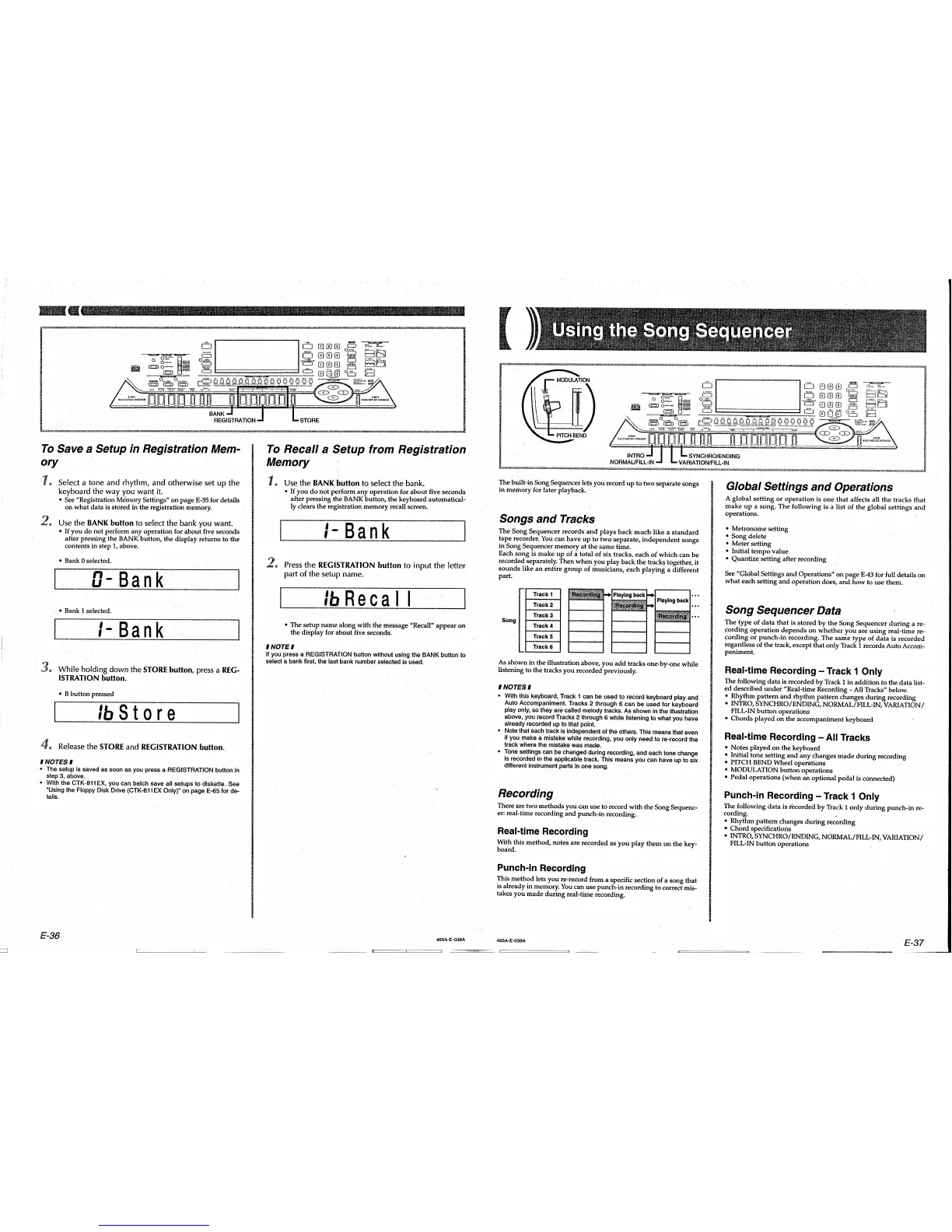 Casio CTK-811EX - Registration Memory; To Save a Setup in Registration Memory; To Recall a Setup from Registration Memory