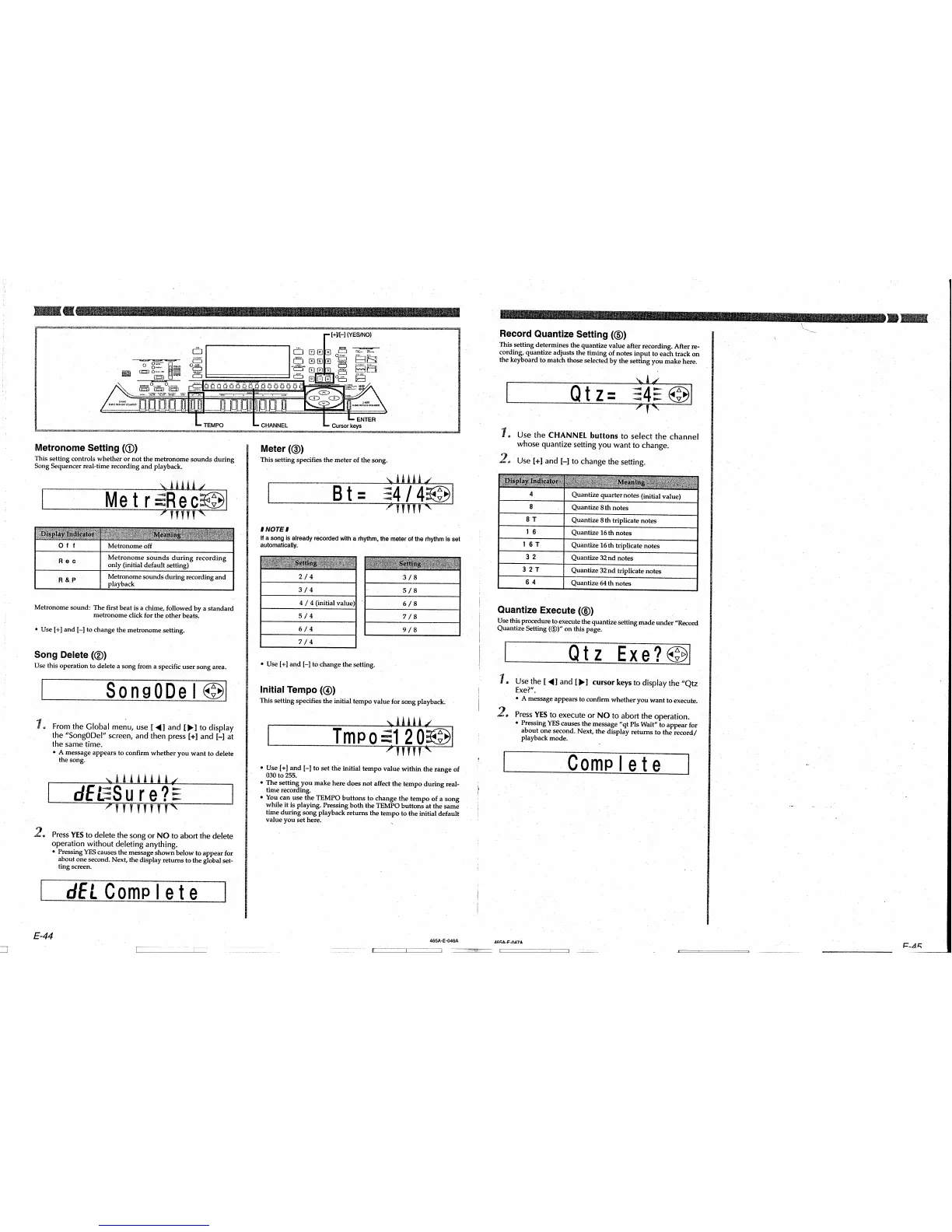 Casio CTK-811EX - Global Settings and Operations; Record Quantize Setting (5); Quantize Execute (6)