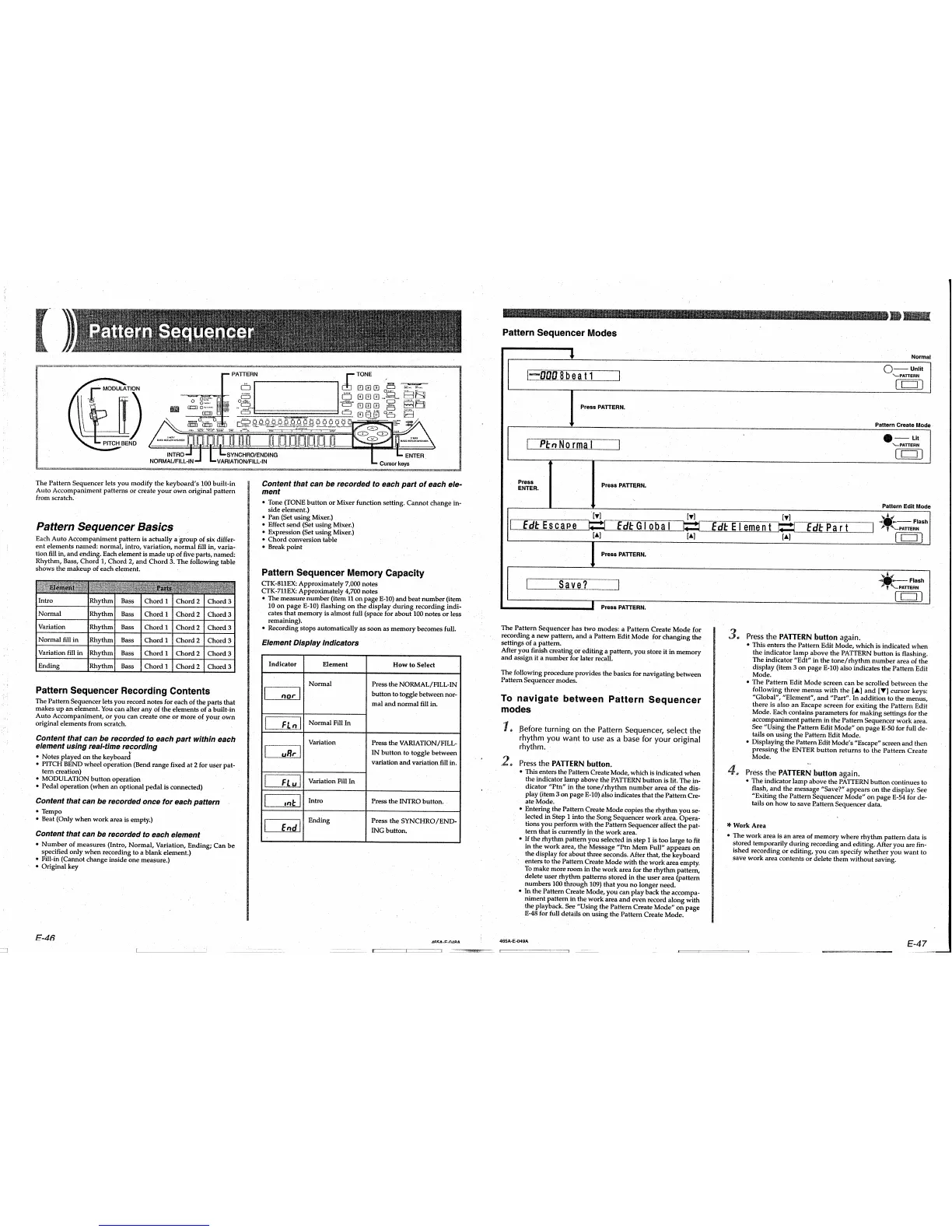 Casio CTK-811EX - Pattern Sequencer; Pattern Sequencer Modes; Pattern Sequencer Basics