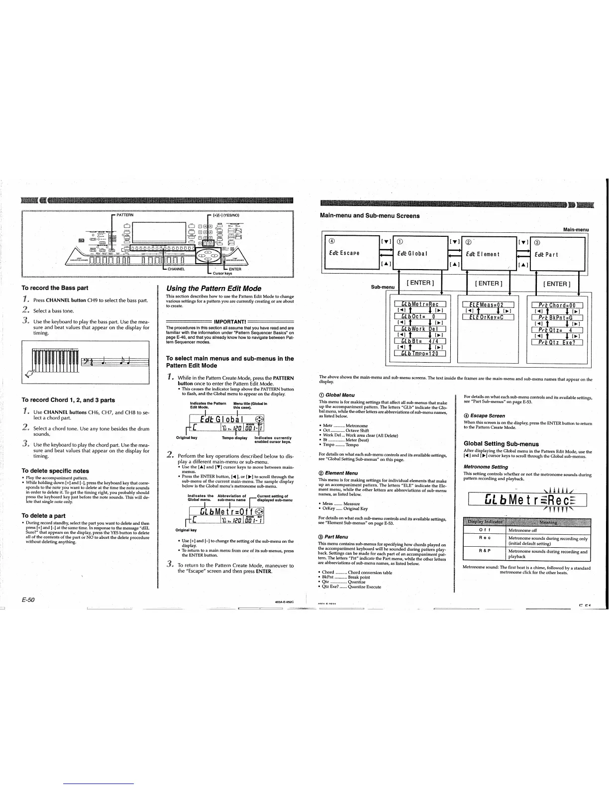 Casio CTK-811EX - To select main menus and sub-menus in the Pattern Edit Mode