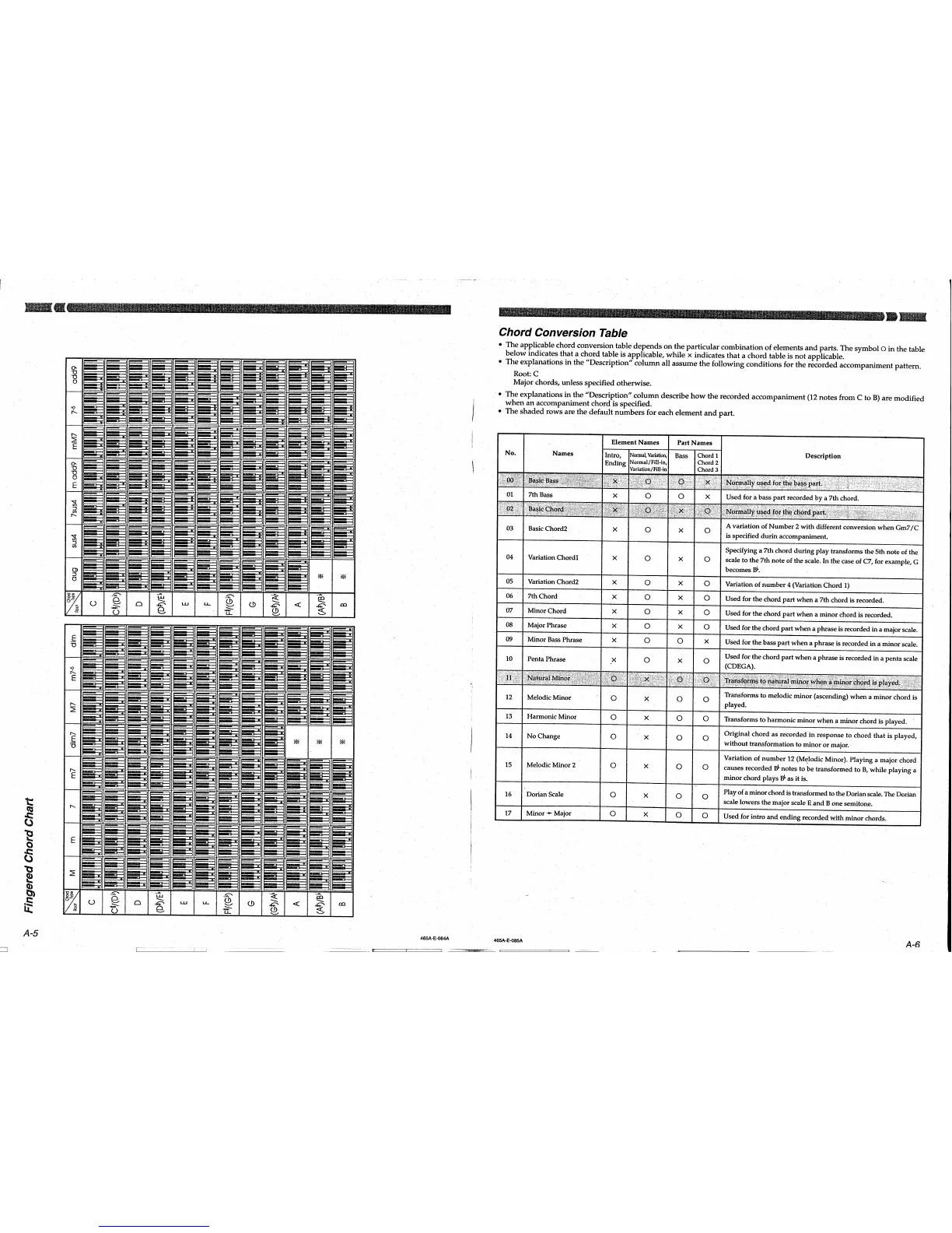 Casio CTK-811EX - Fingered Chord Chart; Chord Conversion Table