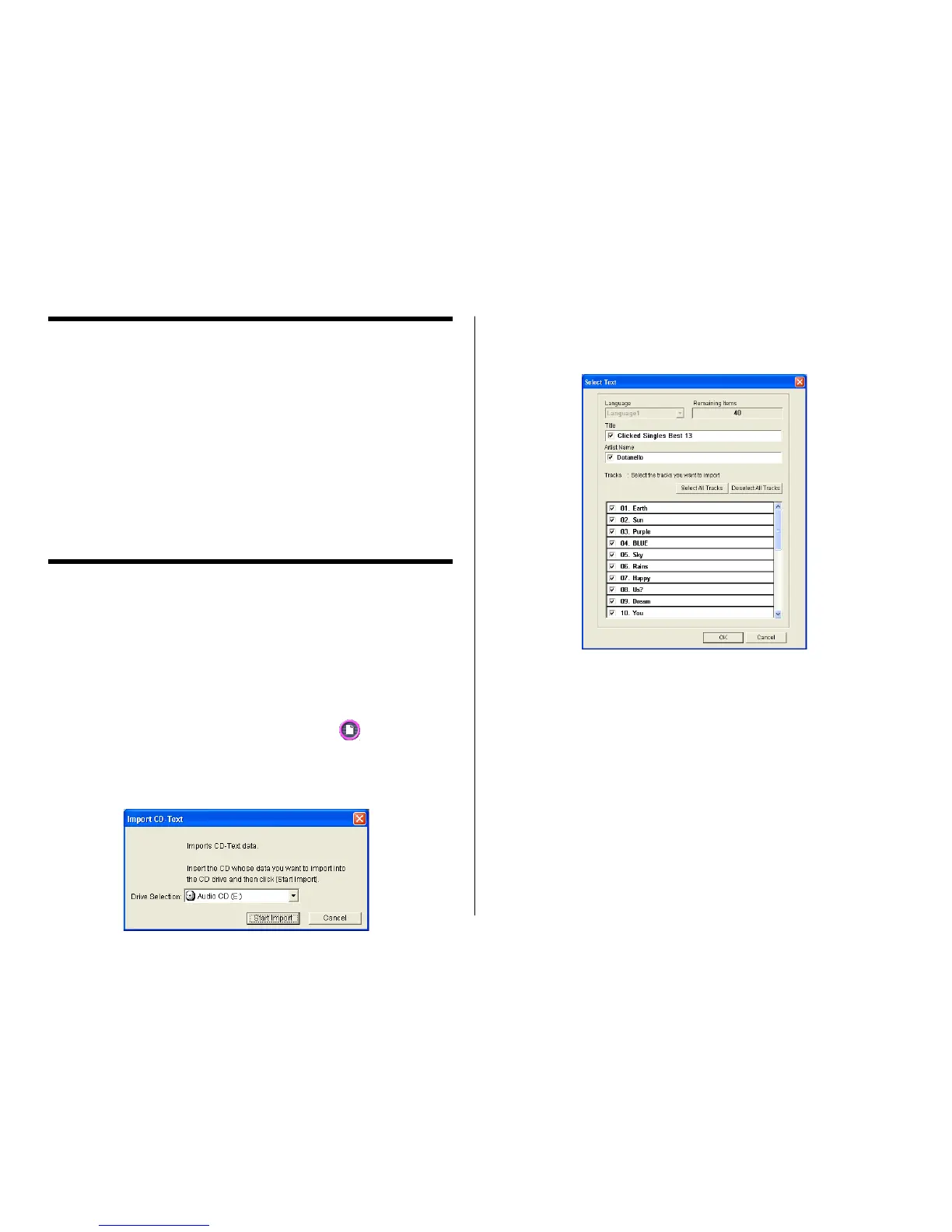 • You will not be able to import CD-Text if your CD drive does not support CD-