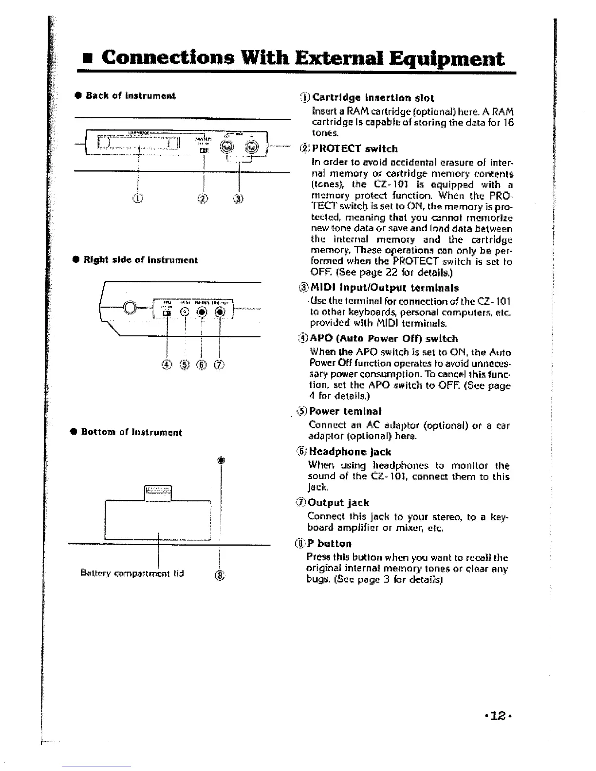 Casio CZ-101 Cosmo - Connections With External Equipment; MIDI Input;Output terminals