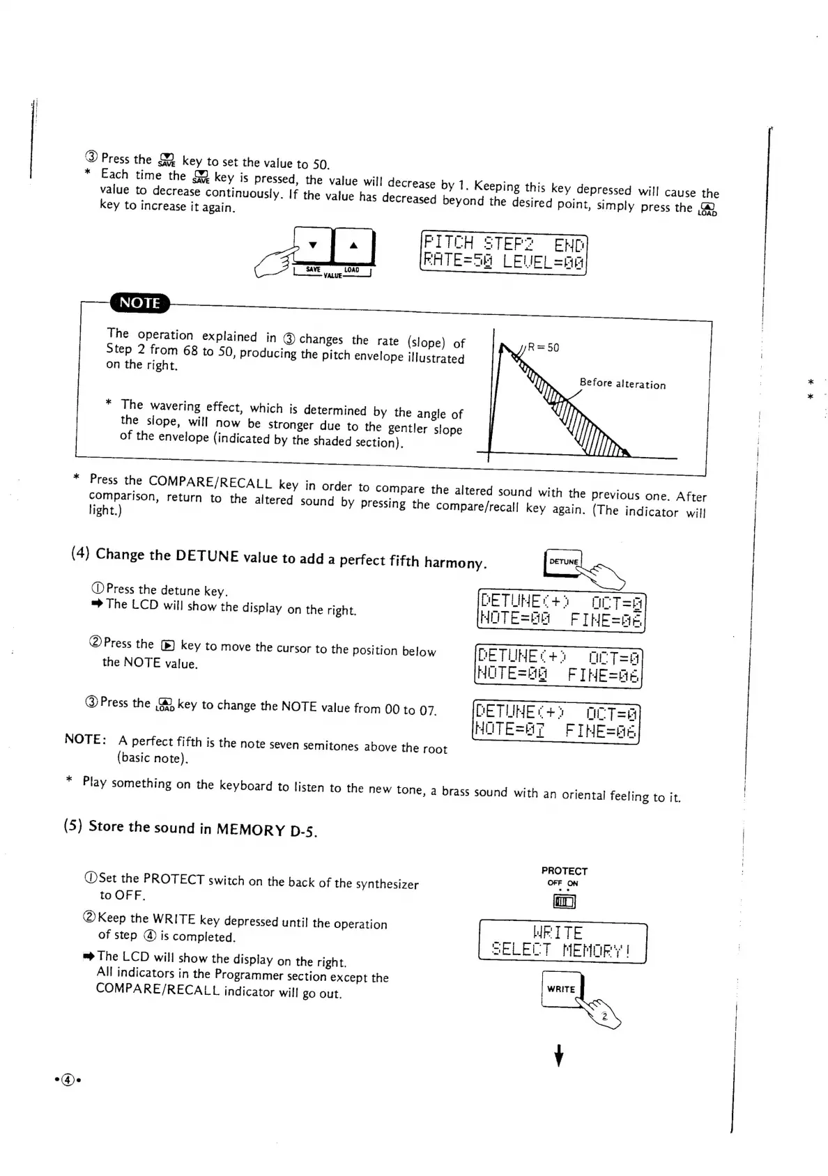 Casio CZ-5000 - DETUNE Value for Harmony; Storing Sound in Memory