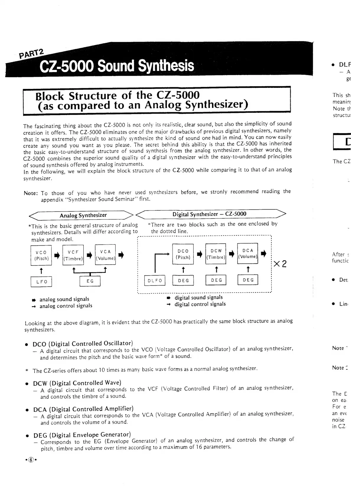 Casio CZ-5000 - CZ-5000 Sound Synthesis; CZ-5000 Block Structure Comparison; DCO, DCW, DCA, DEG Explained