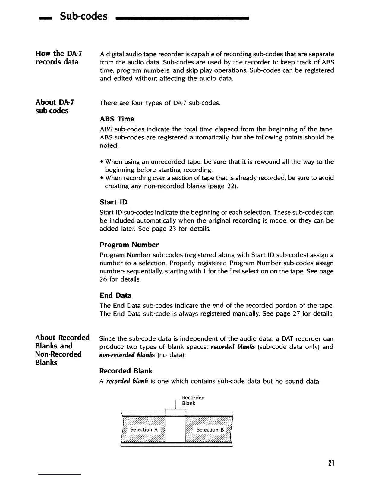 Casio DA-7 - Understanding Sub-codes; Sub-code Functionality; Types of Sub-codes