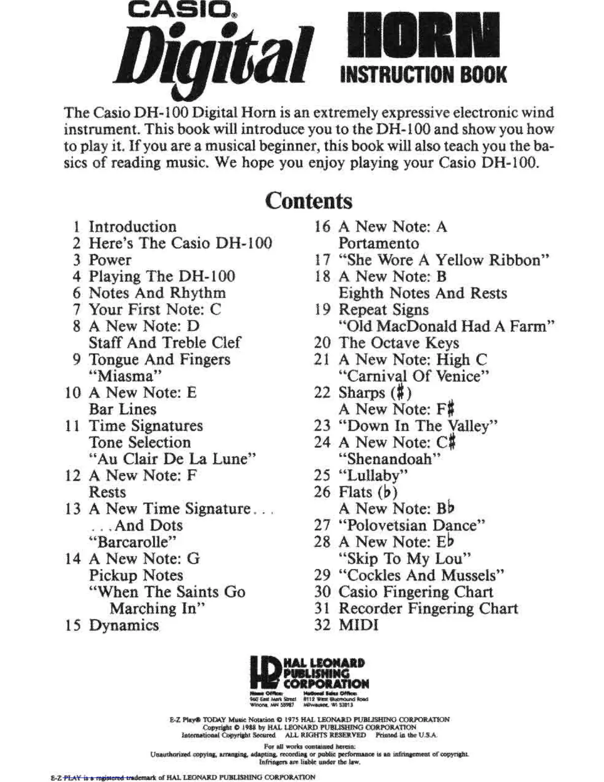 Casio DH-100 - Main Features; Preset Tones; Built-in Speaker; Portamento Effect