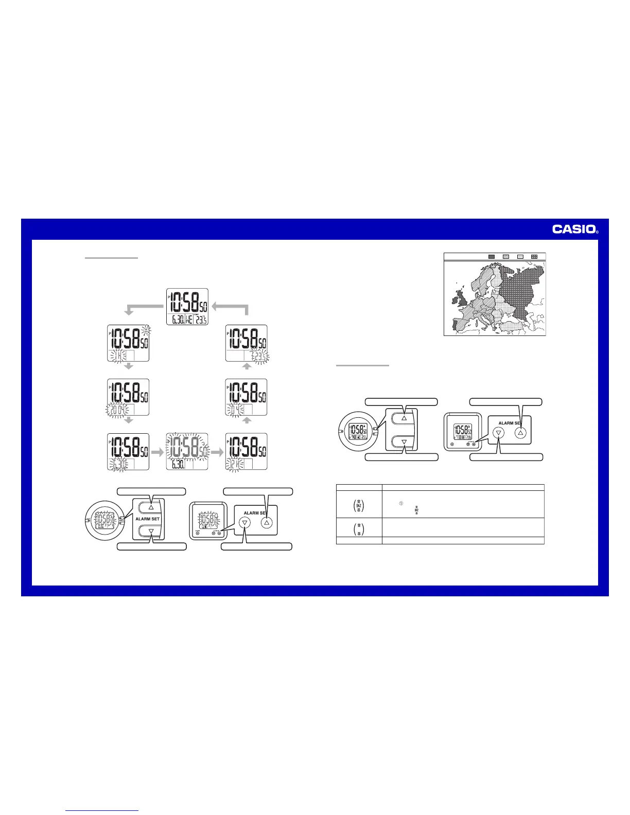 While the screen you want is on the display, use the Alarm Time Set buttons (3) to change the digits that are