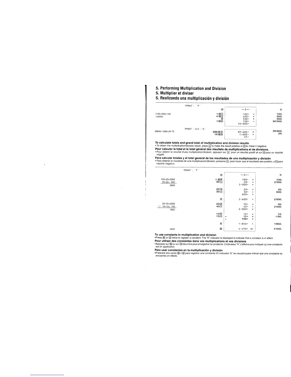 Casio DR-210HD - Performing Multiplication and Division; Calculating Totals and Grand Totals