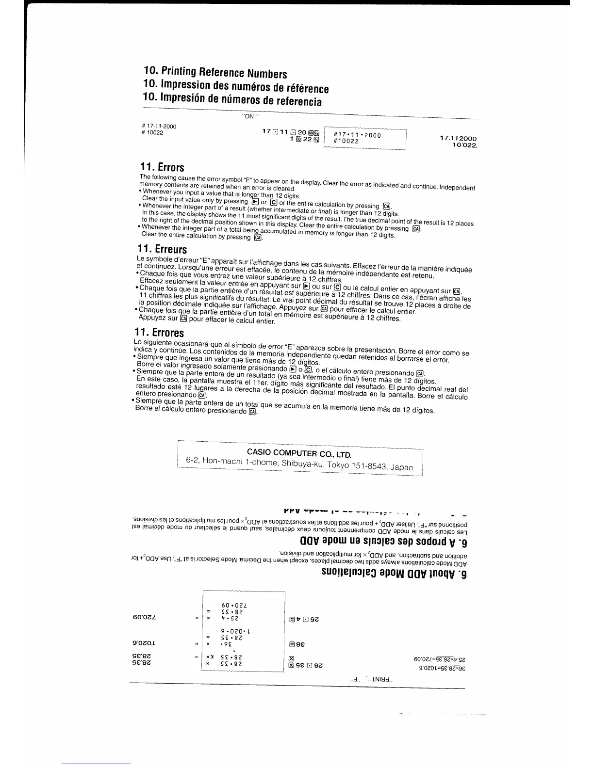 Casio DR-210HD - Error Handling; Causes of Error Symbol E