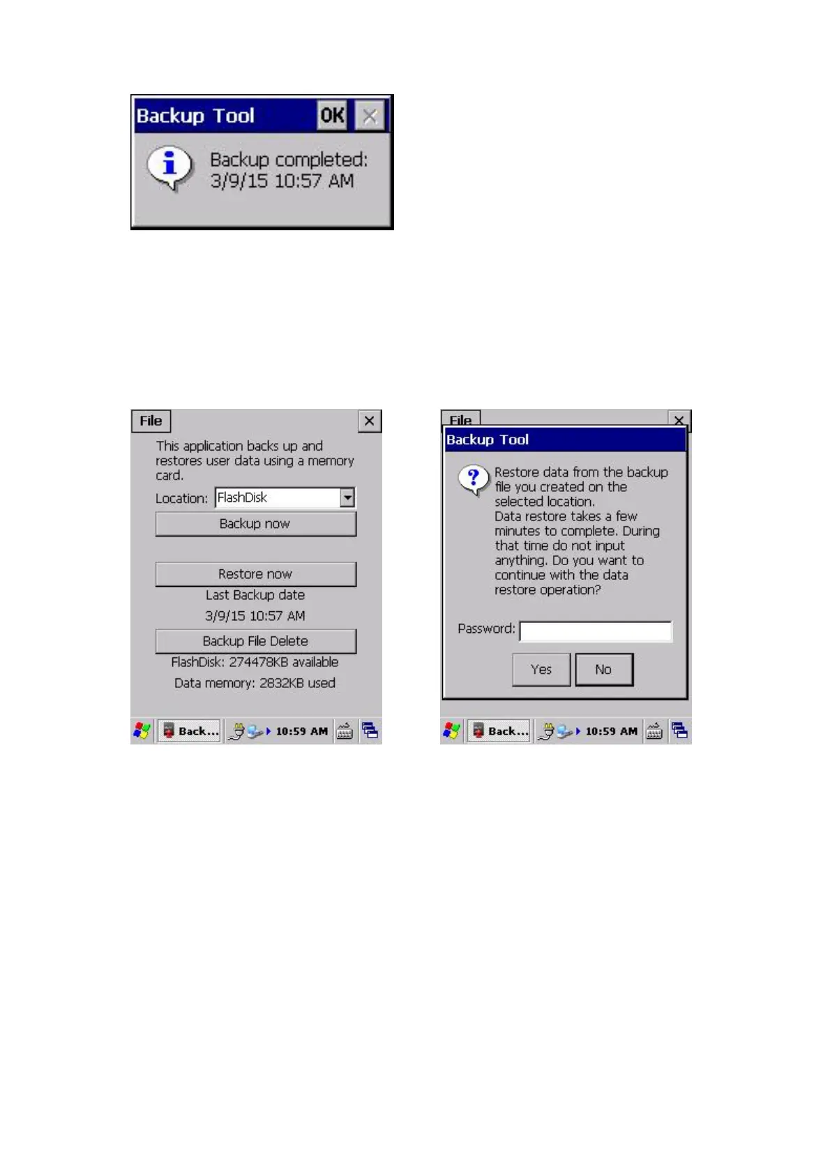 Select Start -> Programs -> Utilities -> Backup Tool.