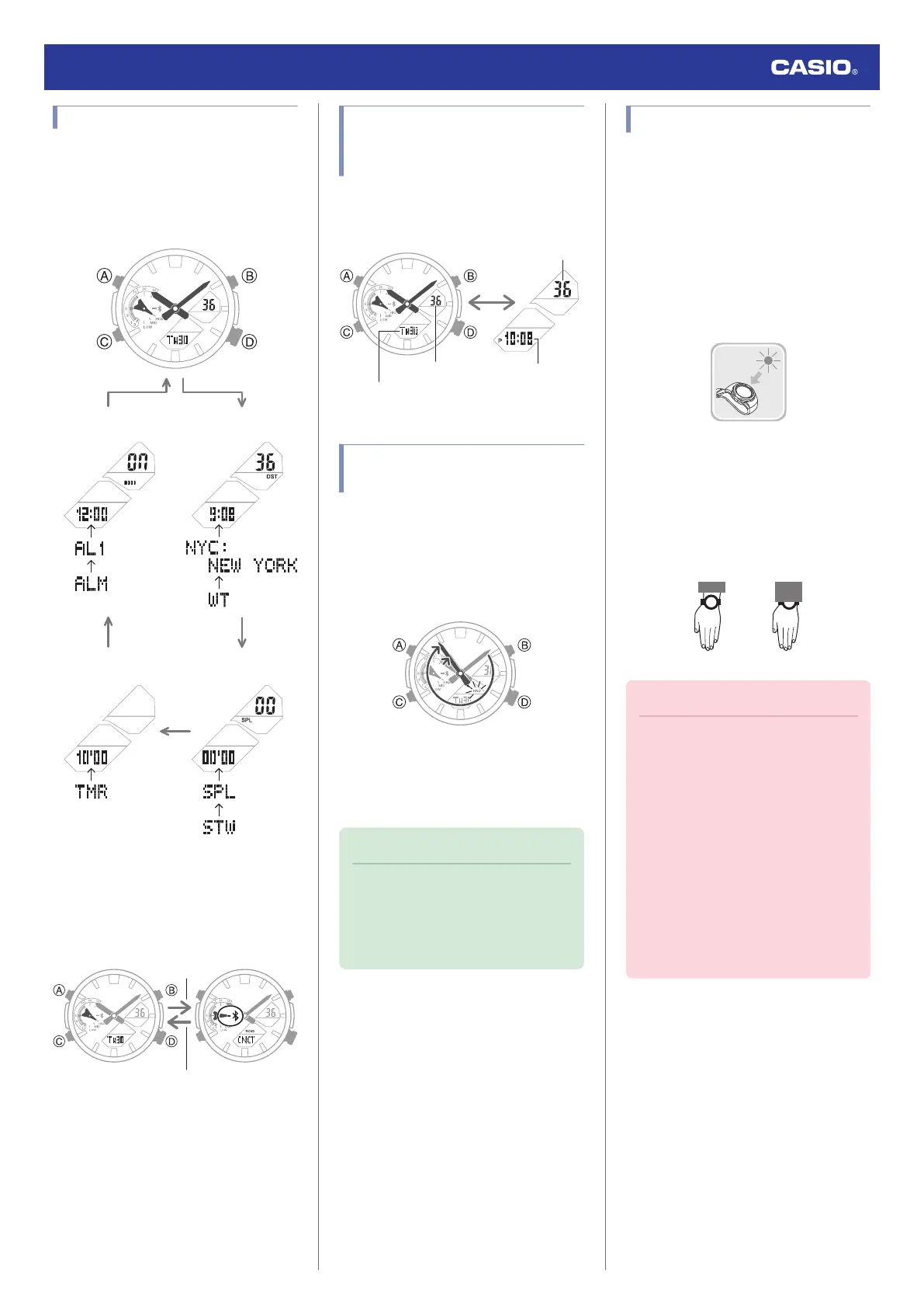 Each press of (C) cycles between watch