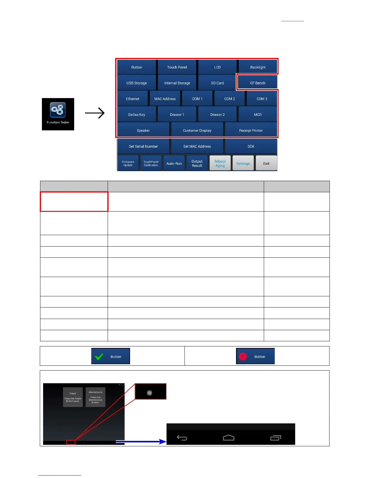 To interrupt the test item being tested, tap the part indicated by the red frame at the bottom of the screen.