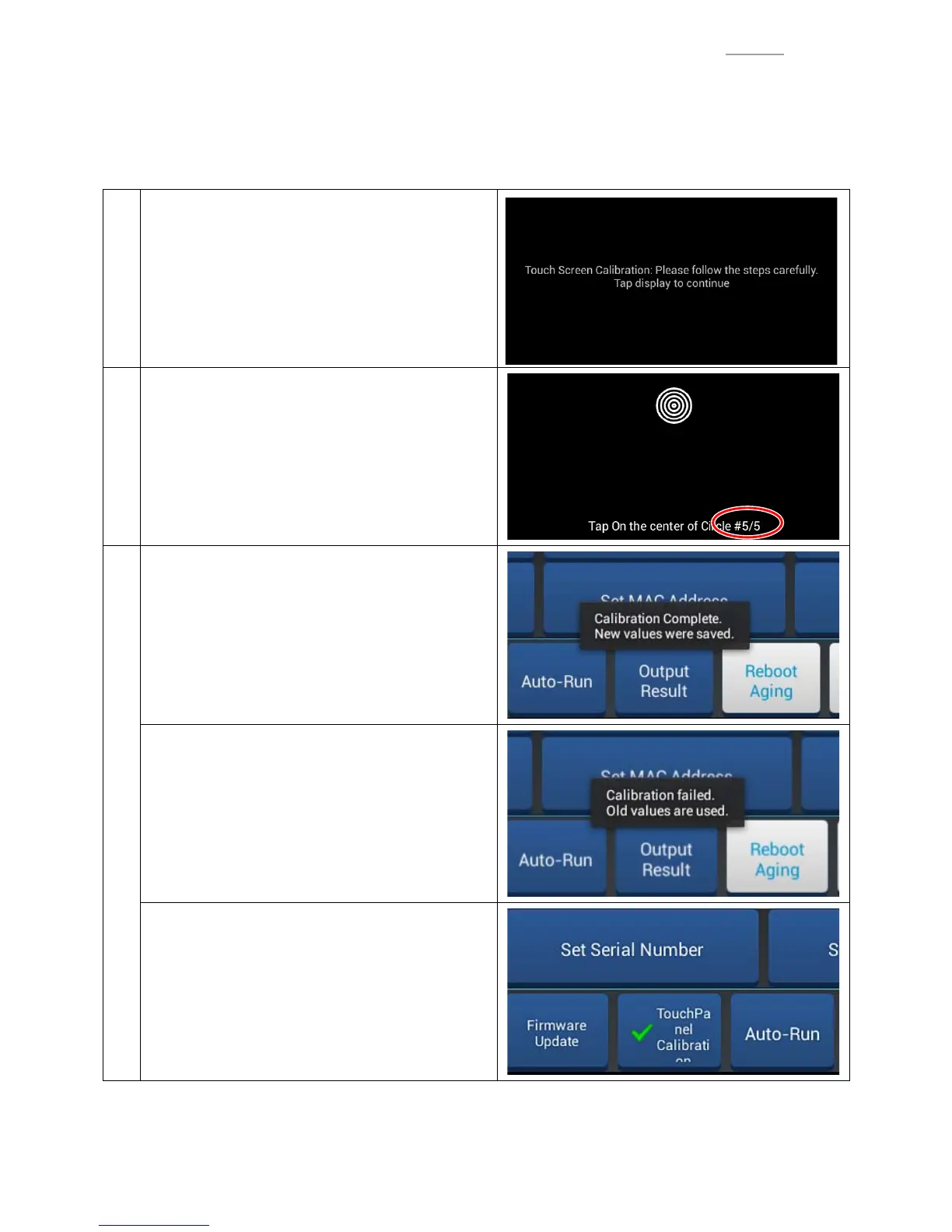 TIPS: Same operation as Touch Screen Calibration in Settings mode.