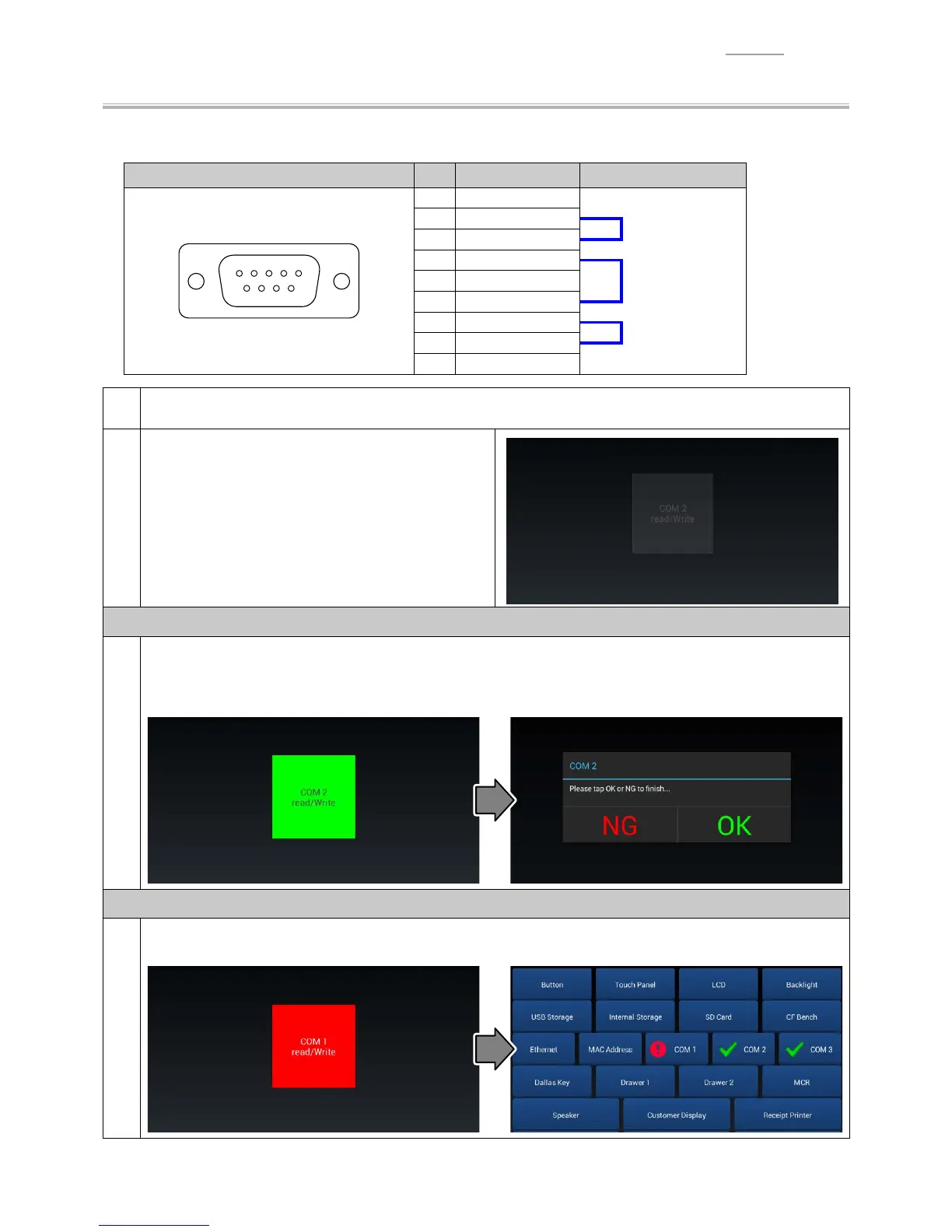Carry out the COM port communication test.