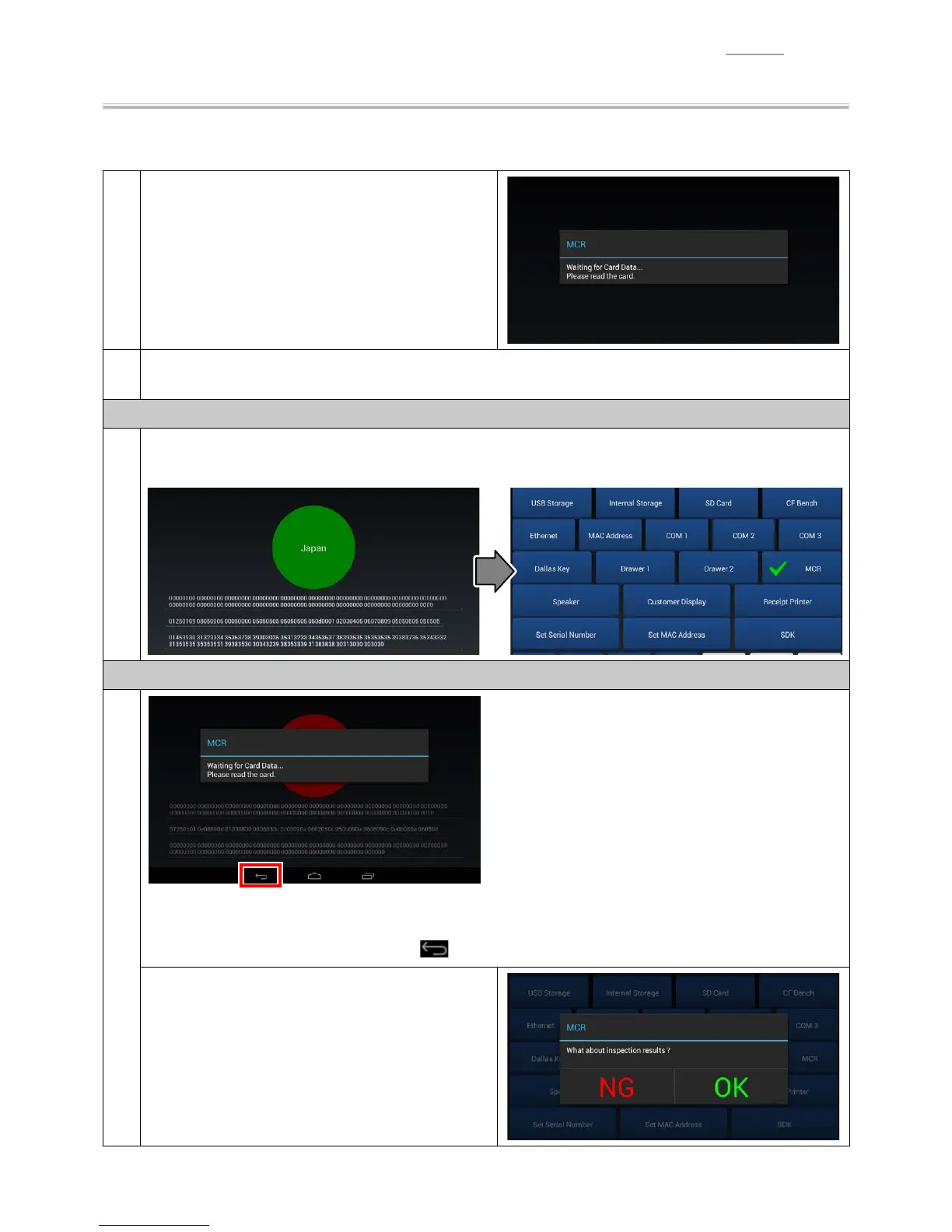 Carry out the magnetic card reading test.