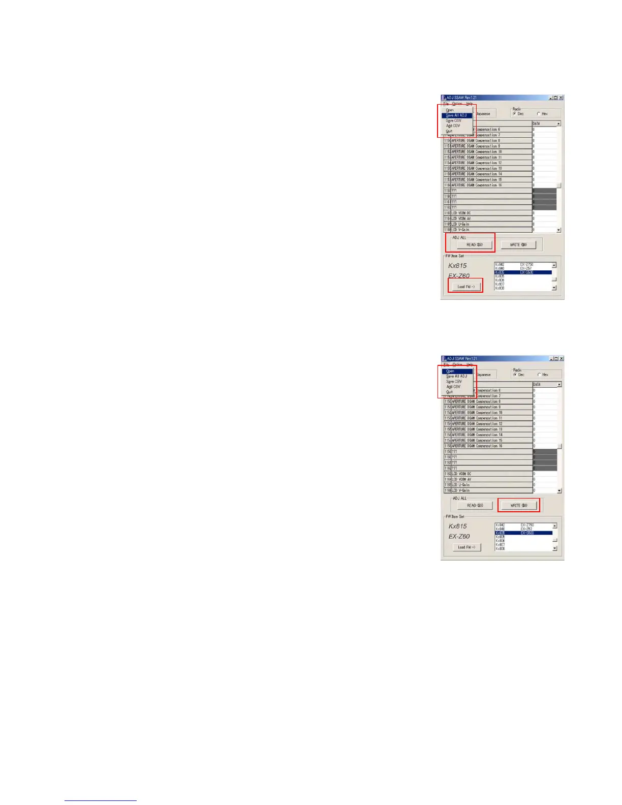B Click "WRITE" button of "ADJ ALL".