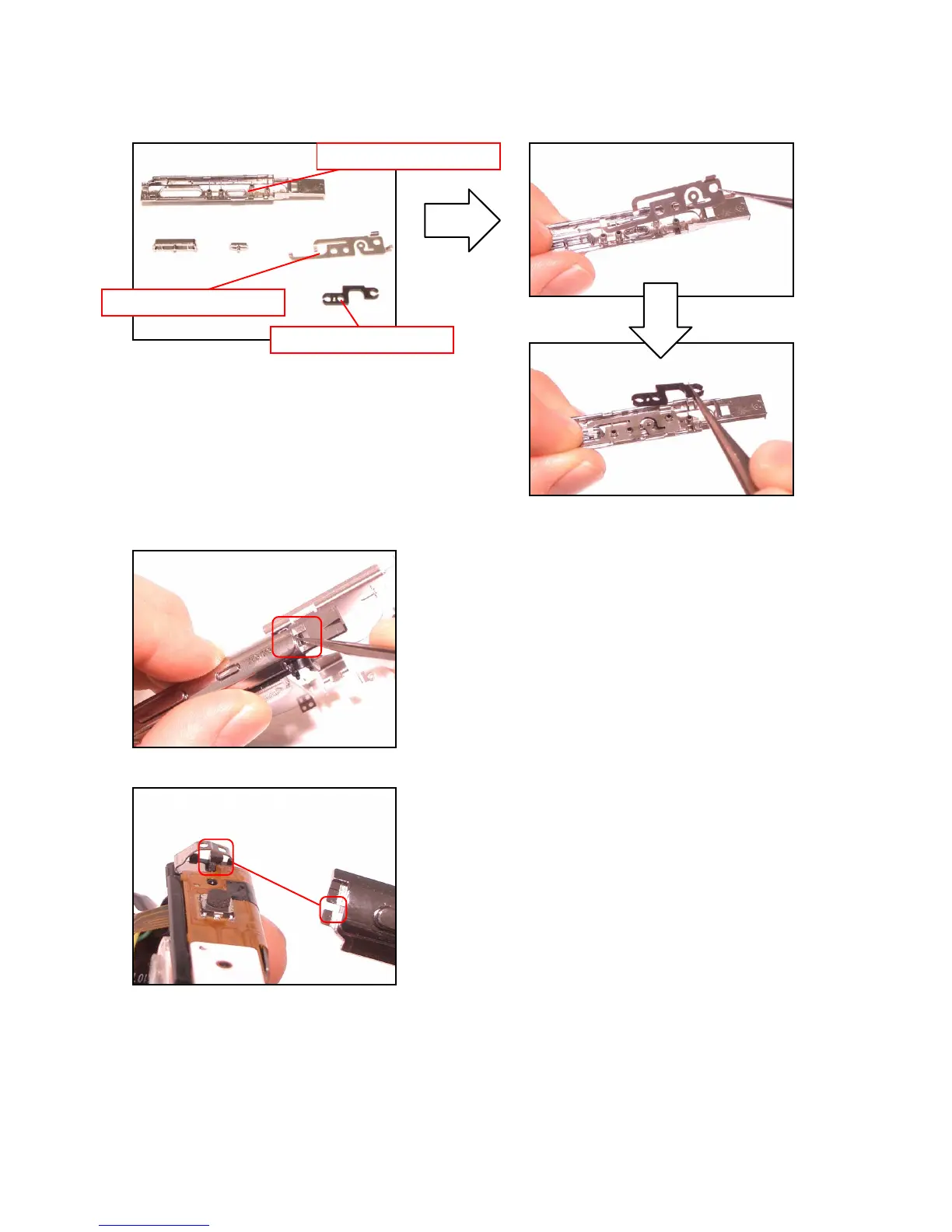 4. Attach two buttons, the SW spring and the shutter spacer in the top case.