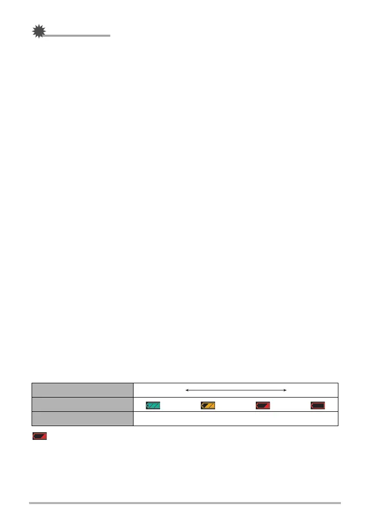 indicates battery power is low. Charge the battery as soon as possible.