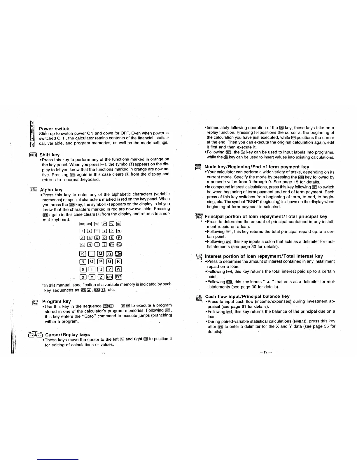 Casio FC-200 - Key Functions Explained; SHIFT Key Functionality; ALPHA Key Functionality; Program Key Usage