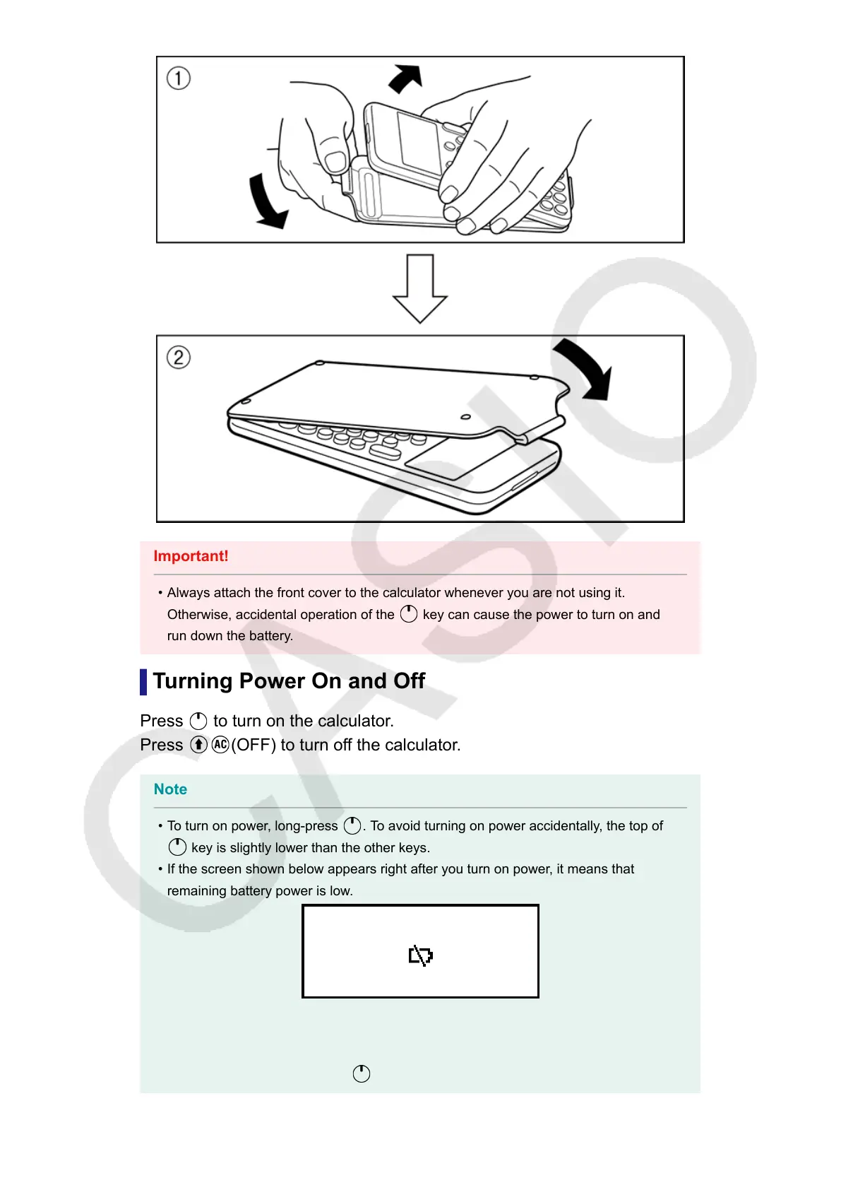 Always attach the front cover to the calculator whenever you are not using it.