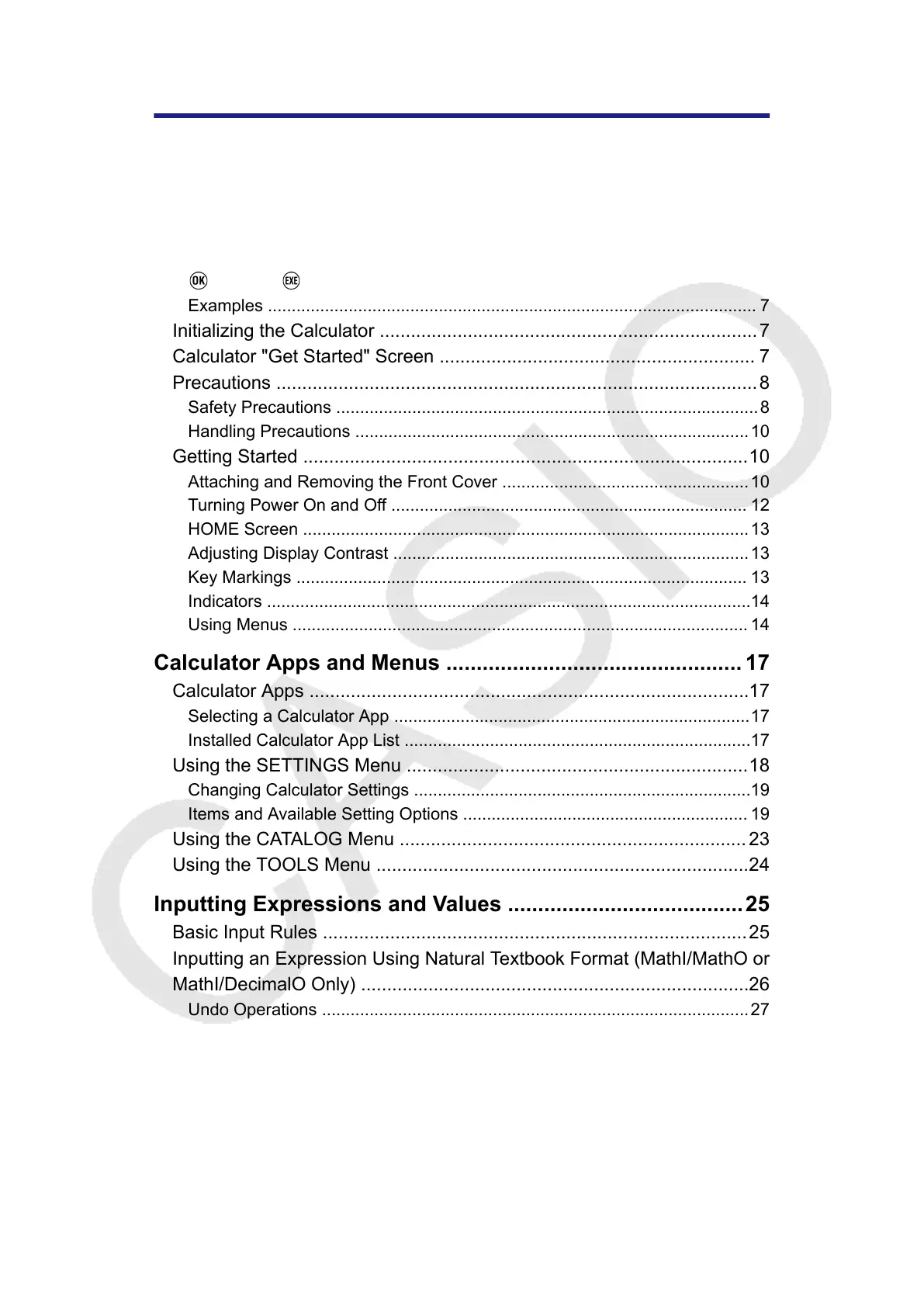 Inputting Expressions and Values .......................................25