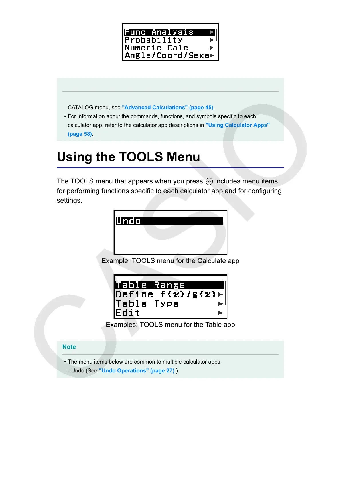 CATALOG menu, see "Advanced Calculations" (page 45).