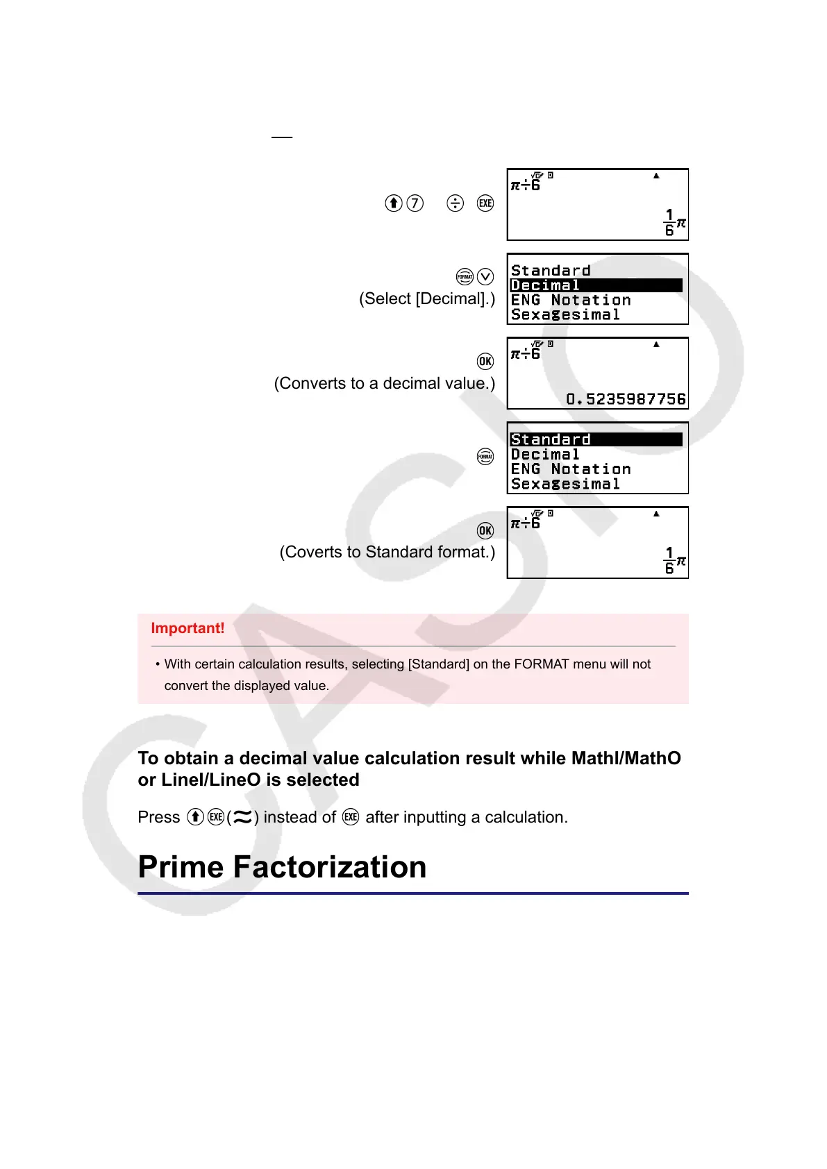 With certain calculation results, selecting [Standard] on the FORMAT menu will not