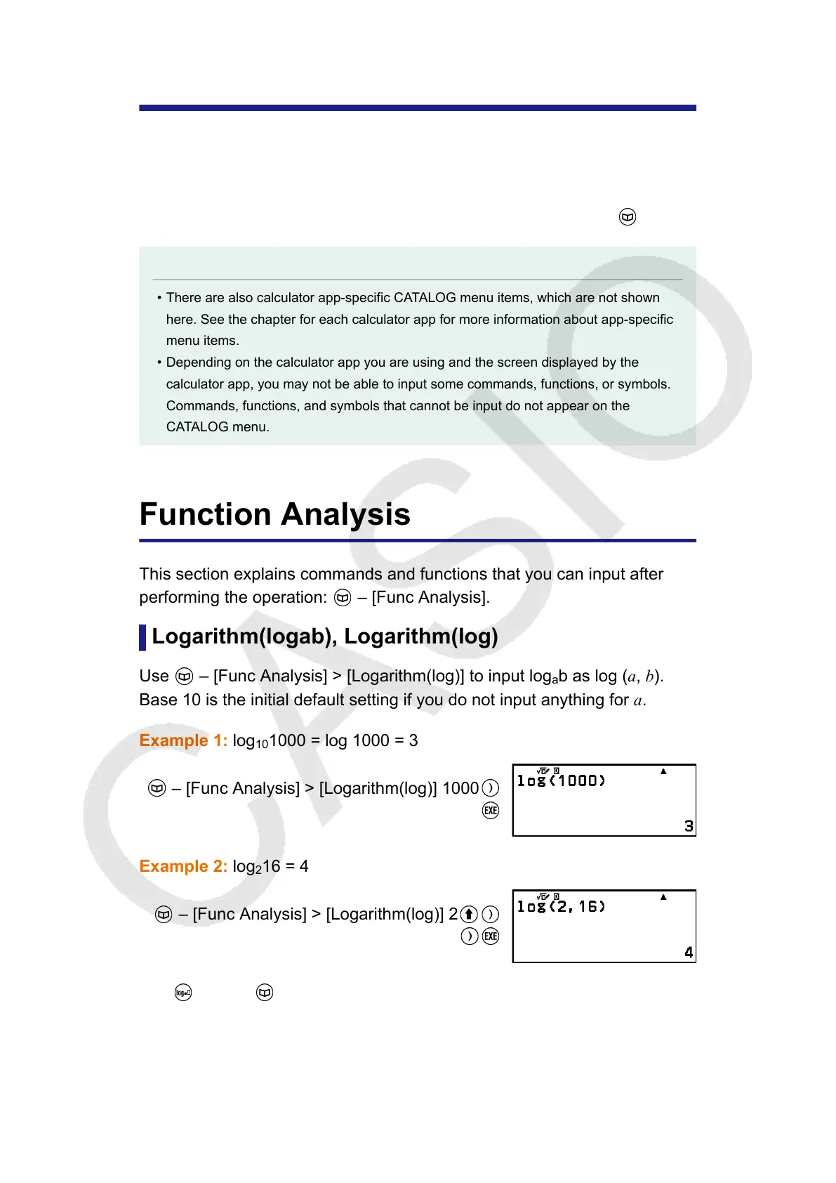 The key (or – [Func Analysis] > [Logarithm(logab)]) also can be