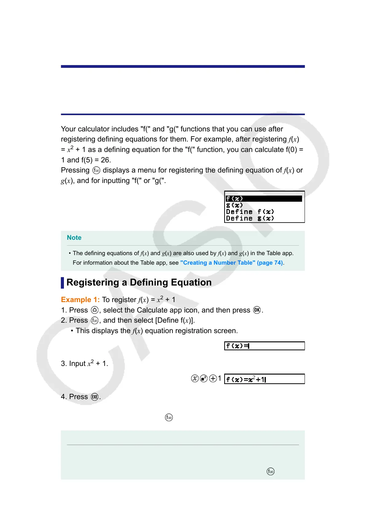 The defining equations of f(x) and g(x) are also used by f(x) and g(x) in the Table app.