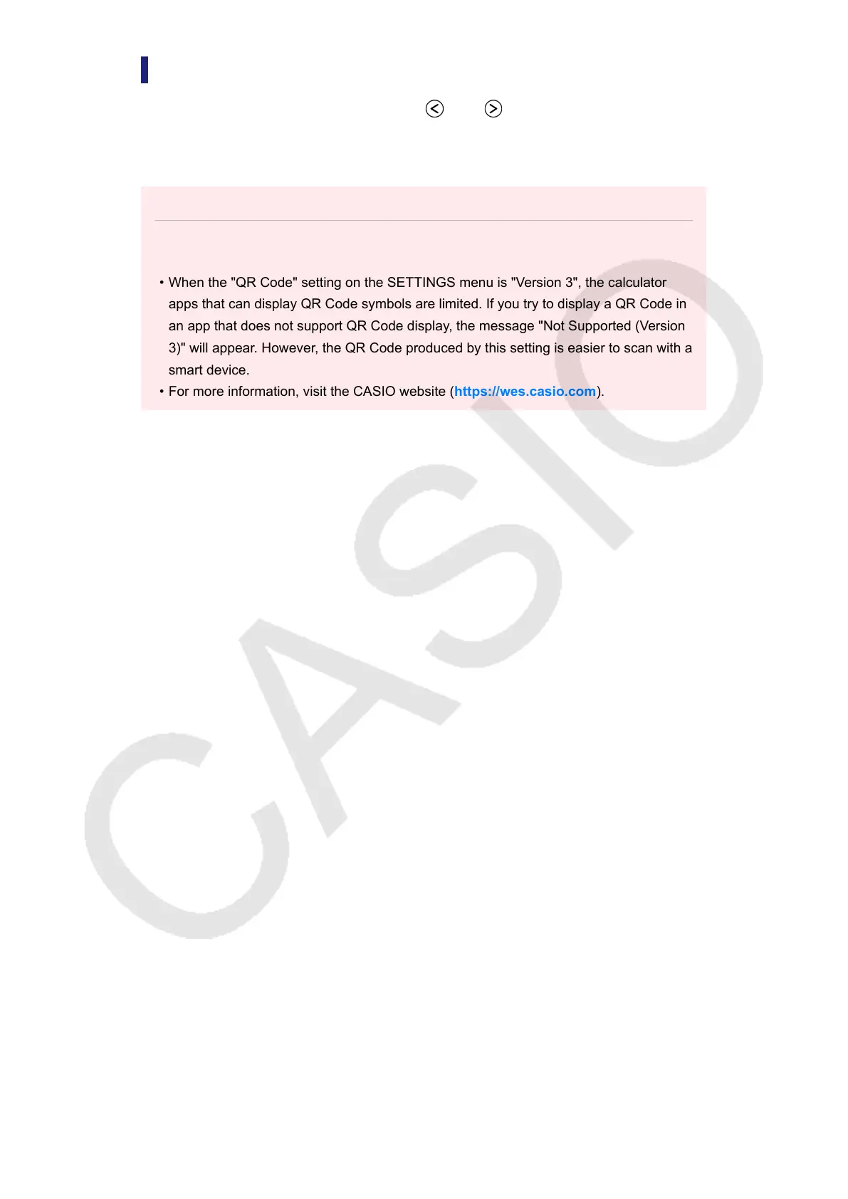 • When the "QR Code" setting on the SETTINGS menu is "Version 3", the calculator