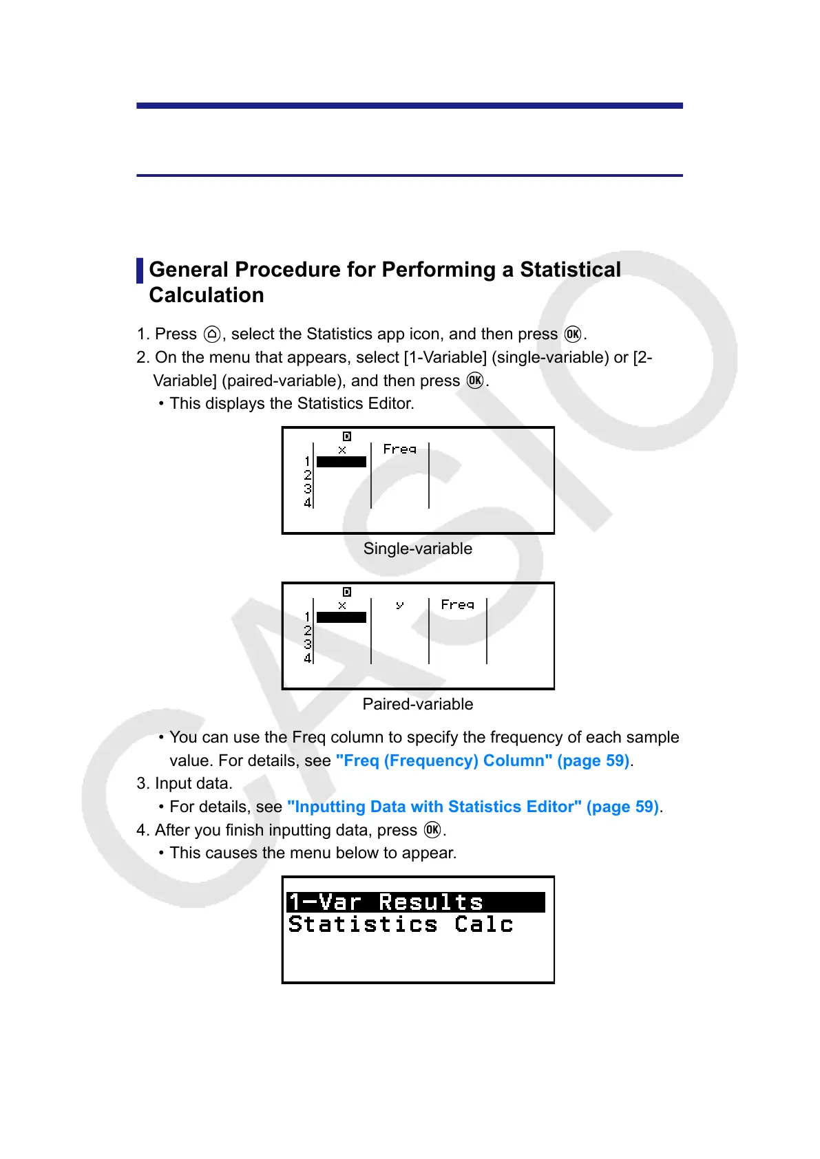 • For details, see "Inputting Data with Statistics Editor" (page 59).