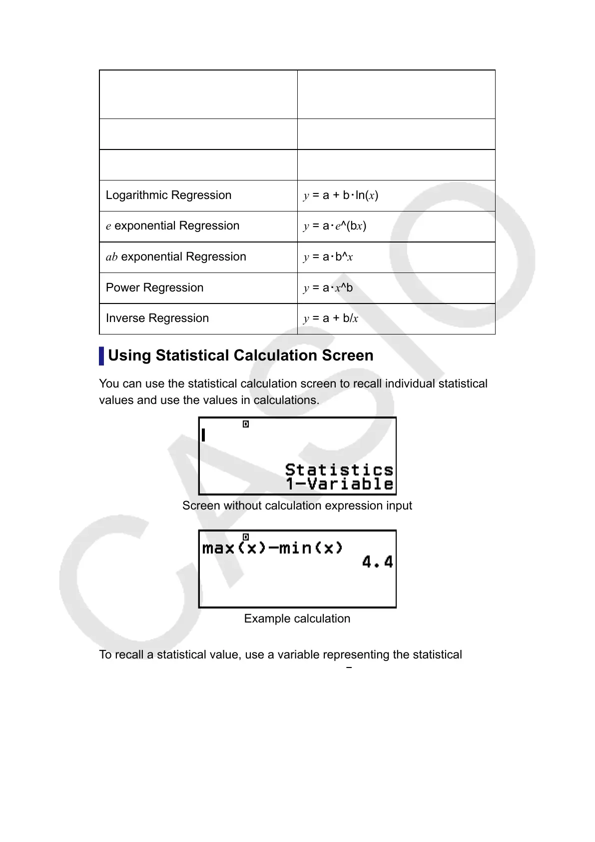 You can use the statistical calculation screen to recall individual statistical