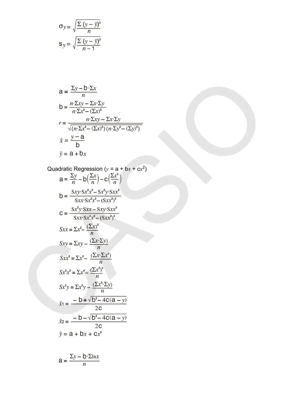 Regression Calculation Formula