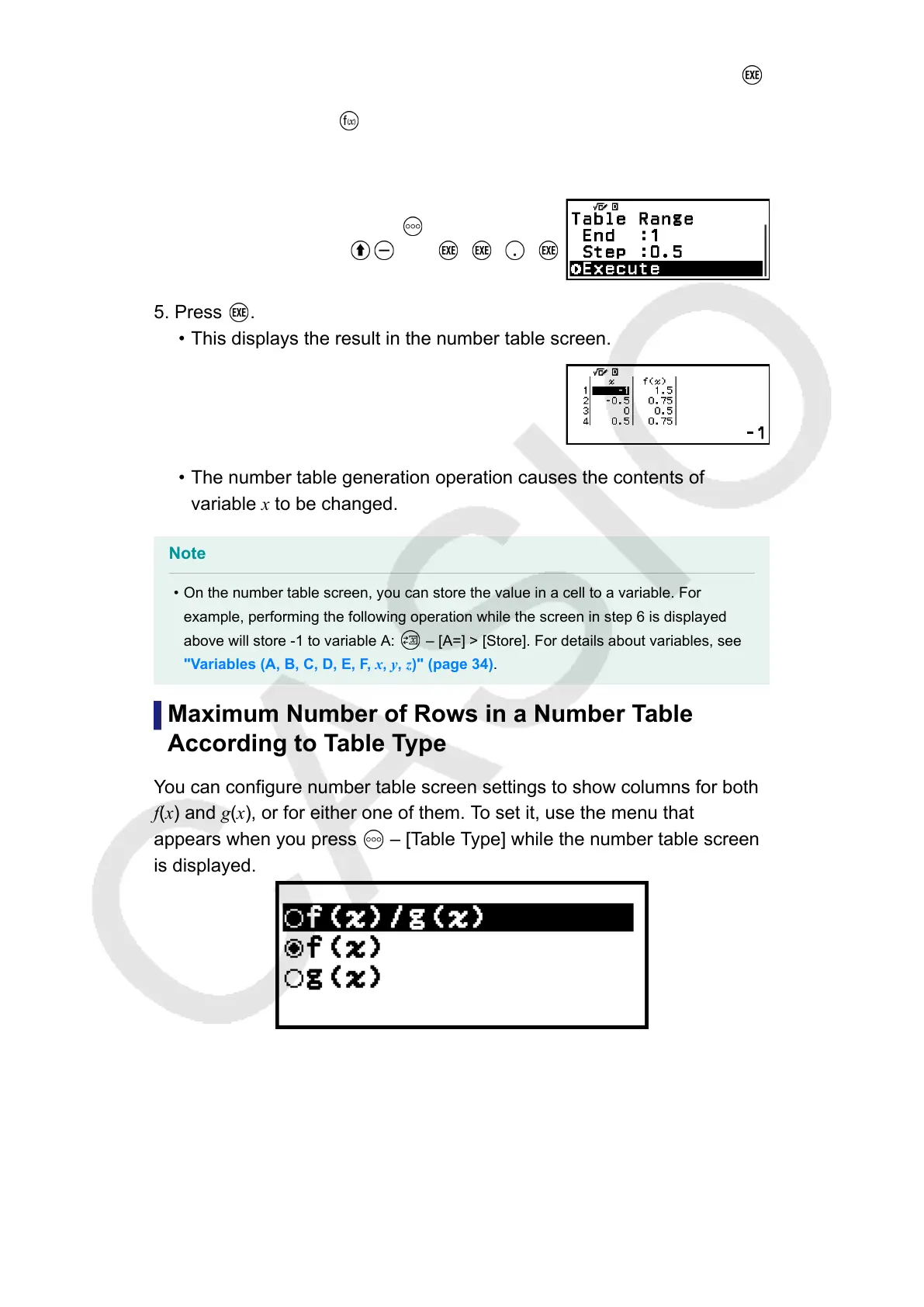 the Table Type setting. Up to 45 rows are supported for the "f(x)" or "g(x)"
