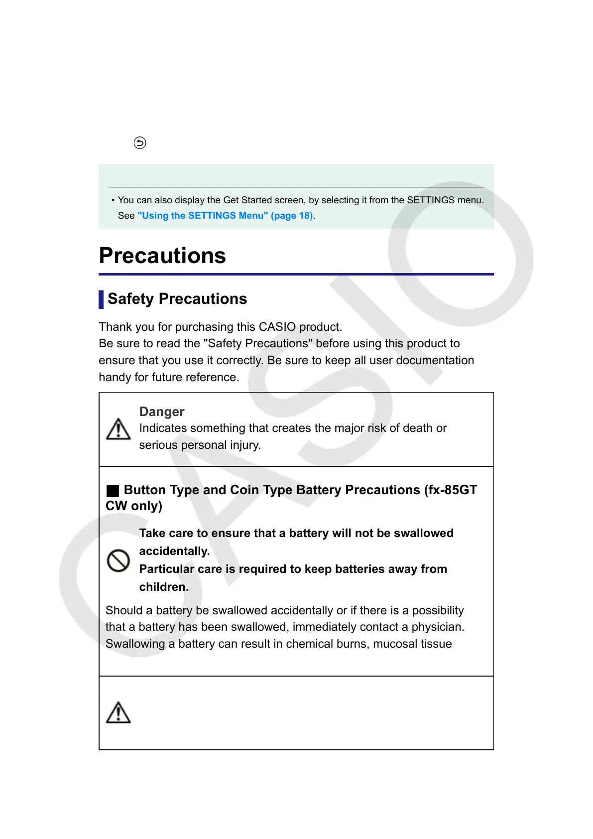 Button Type and Coin Type Battery Precautions (fx-85GT