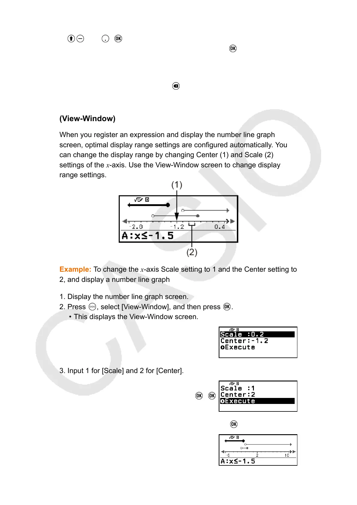 Example: To change the x-axis Scale setting to 1 and the Center setting to