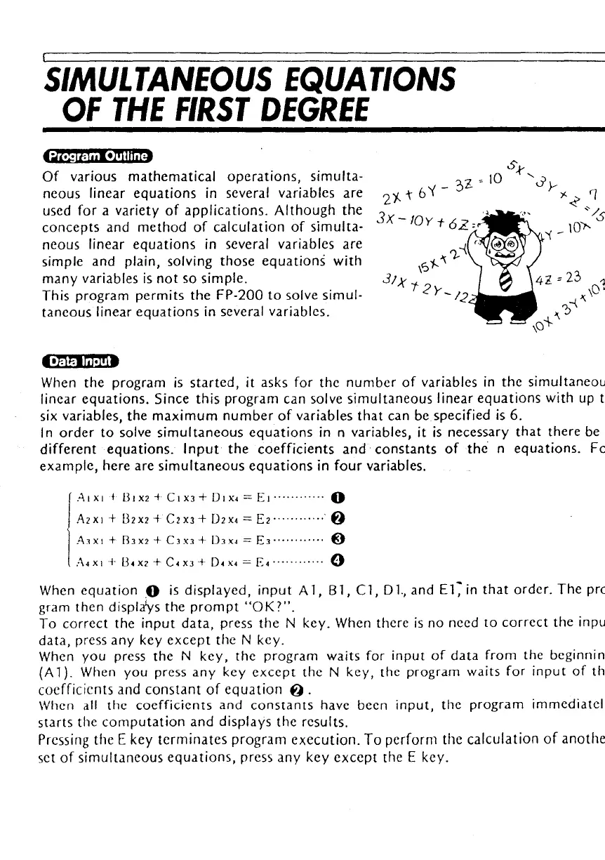 Casio FP-200 - Simultaneous Equations of the First Degree; Program Outline; Data Input