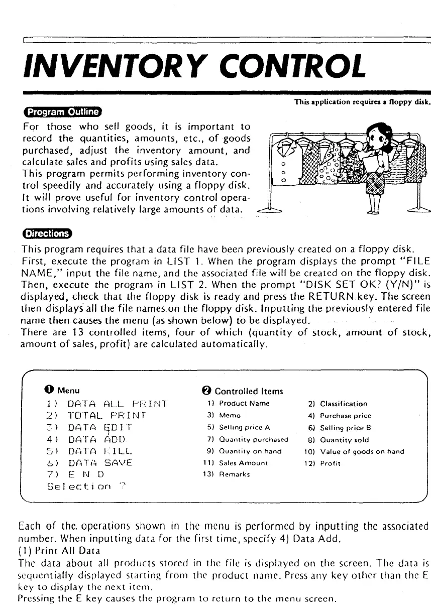 Casio FP-200 - Inventory Control; Program Outline; Directions