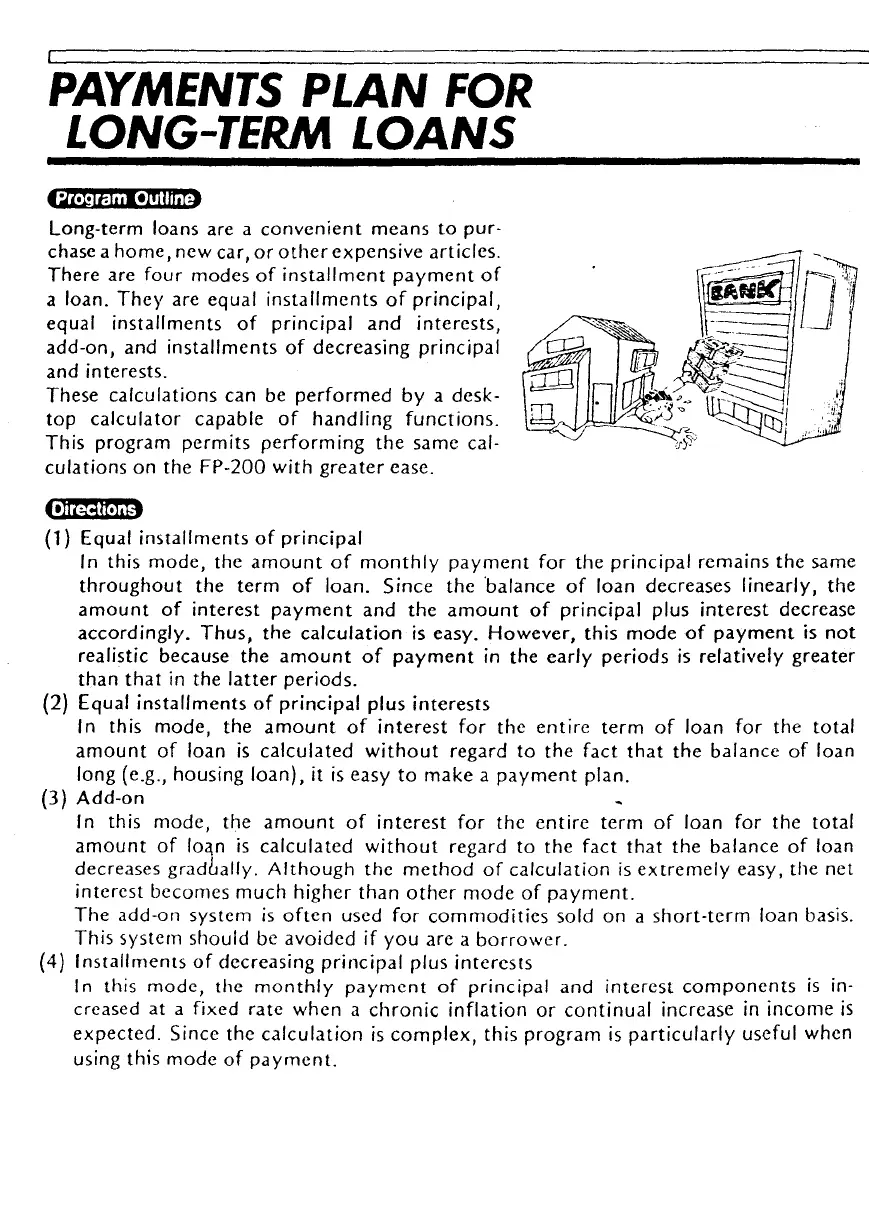 Casio FP-200 - Payments Plan for Long-Term Loans; Program Outline; Directions