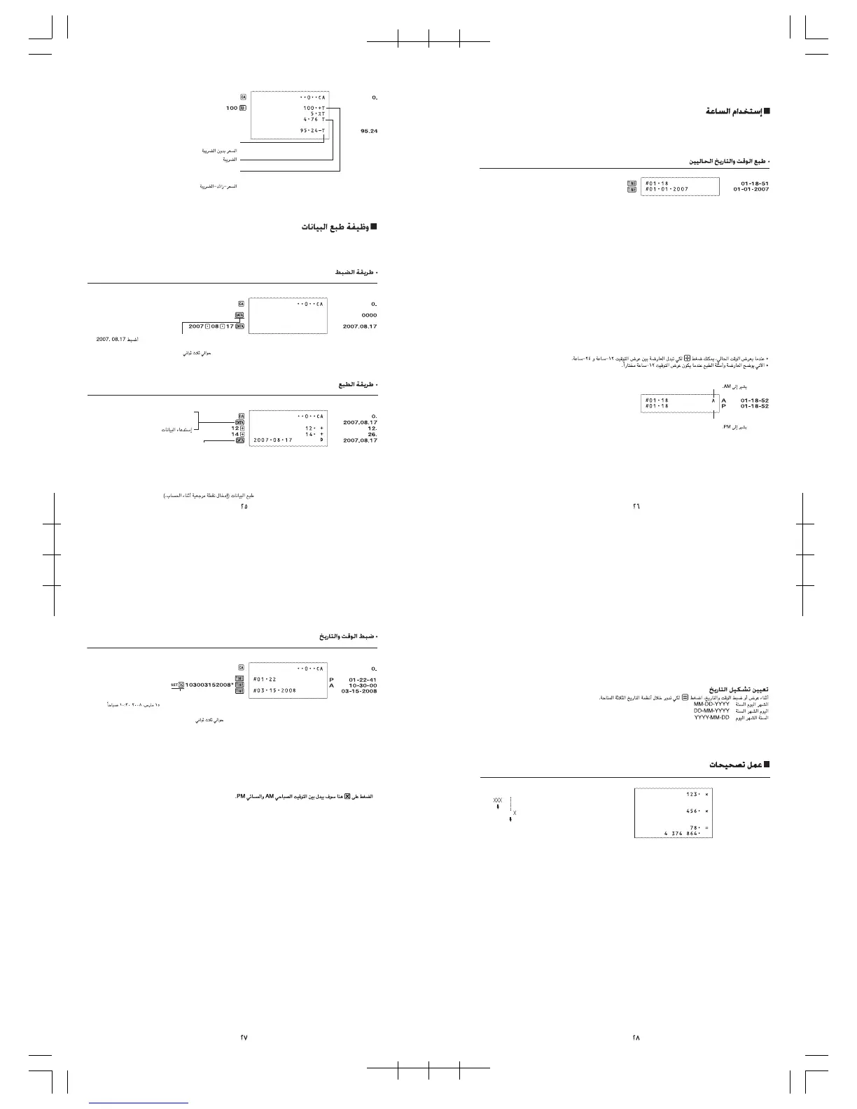 • Berikut ini adalah contoh tampilan dan cetakan ketika mode 12-jam yang dipilih.