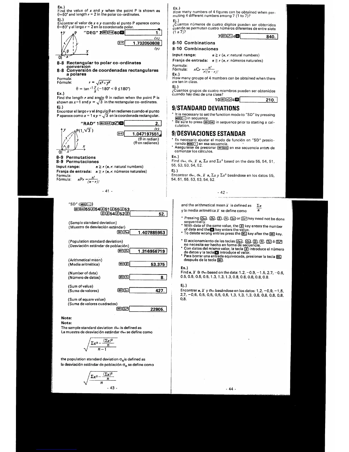 Casio FX-100B - Statistical Calculations; Setting SD Mode and Clearing Registers; Calculating Mean and Standard Deviations; Calculating Sums and Number of Data